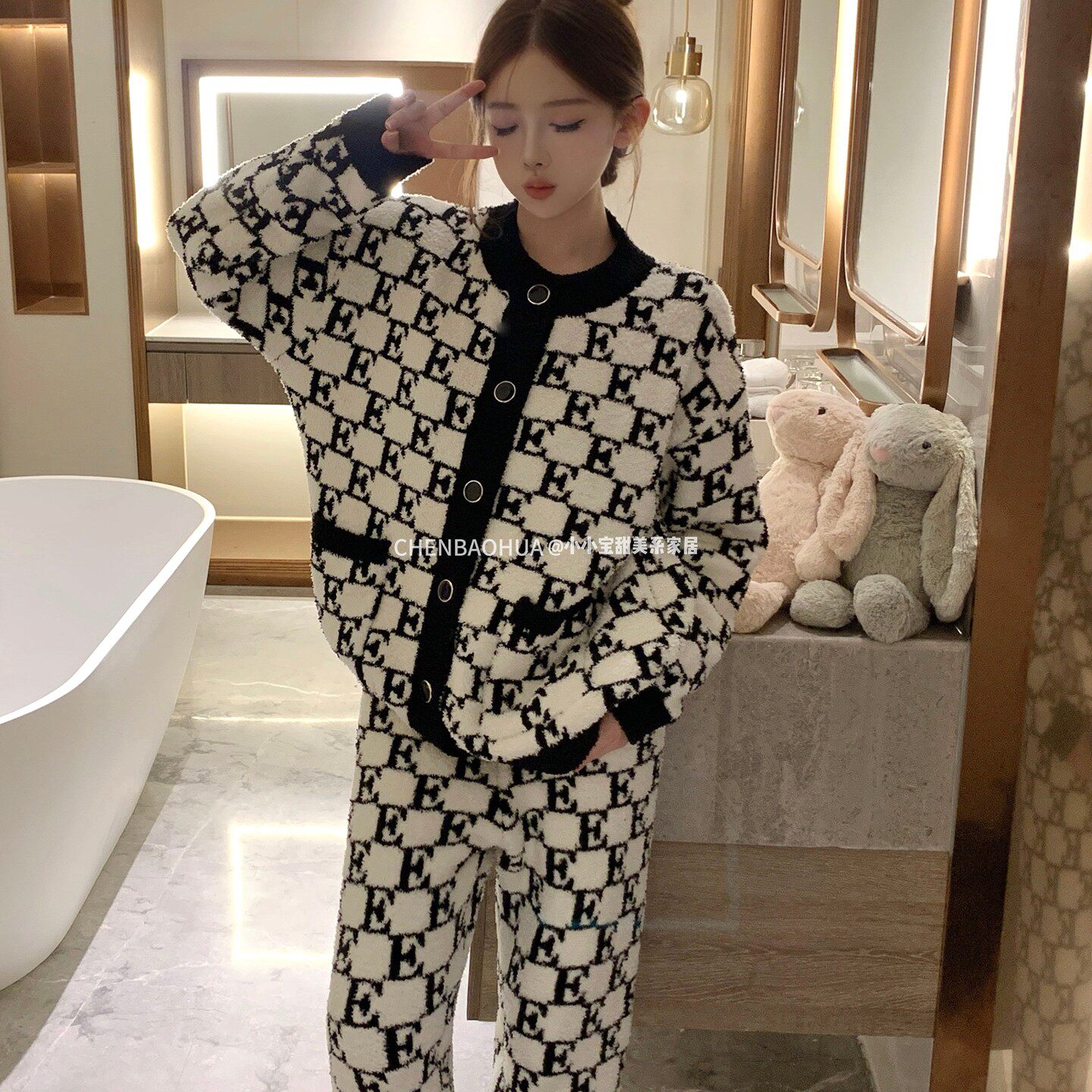 洋气高级感睡衣女冬加厚保暖珊瑚绒半边绒时尚可外穿小香风家居服