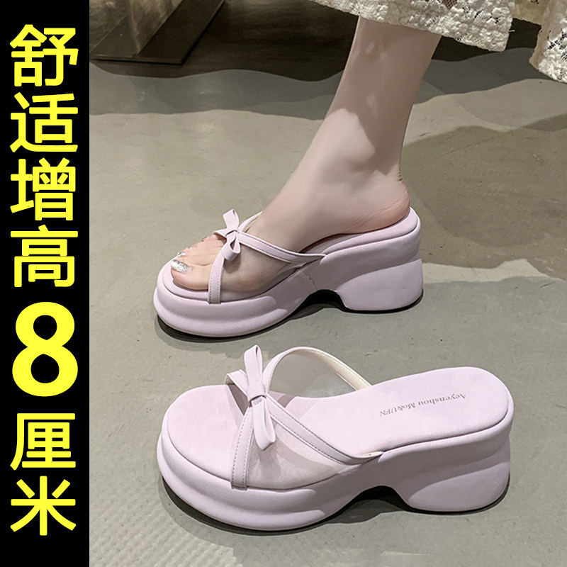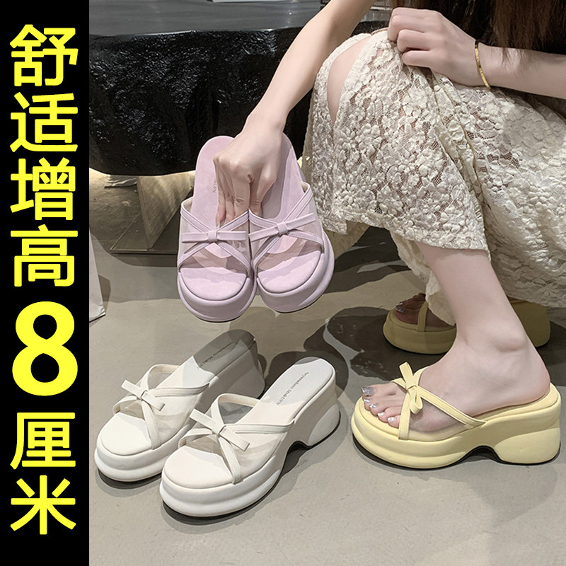 高跟凉拖鞋女2026新款夏季外穿坡跟厚底法式绝美不累脚沙滩拖鞋