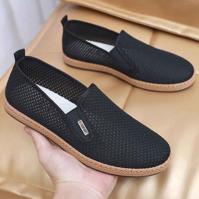 夏季艾草男布鞋网面软底透气防滑休闲开车专用一脚蹬网布鞋镂空