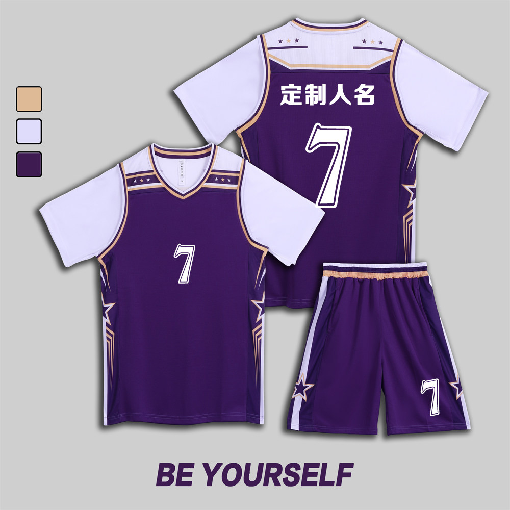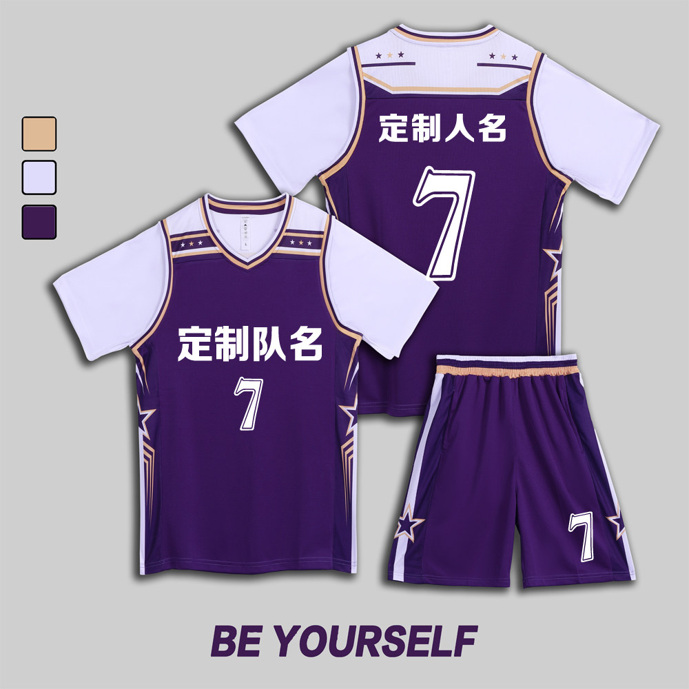 女款女生女童学生假两件短袖篮球服运动健身套装定制印刷3009紫色