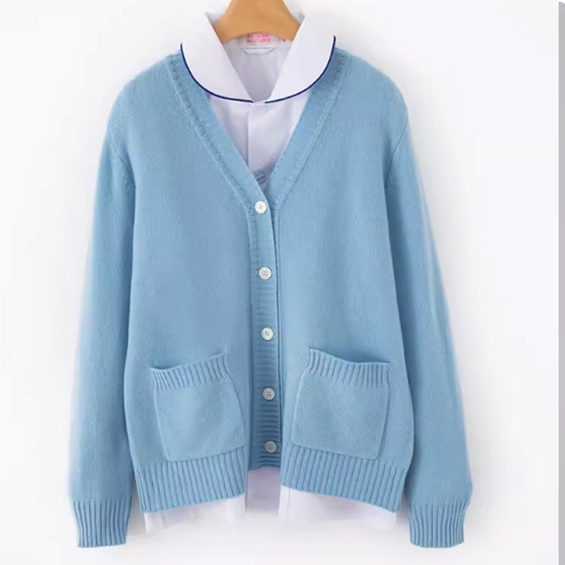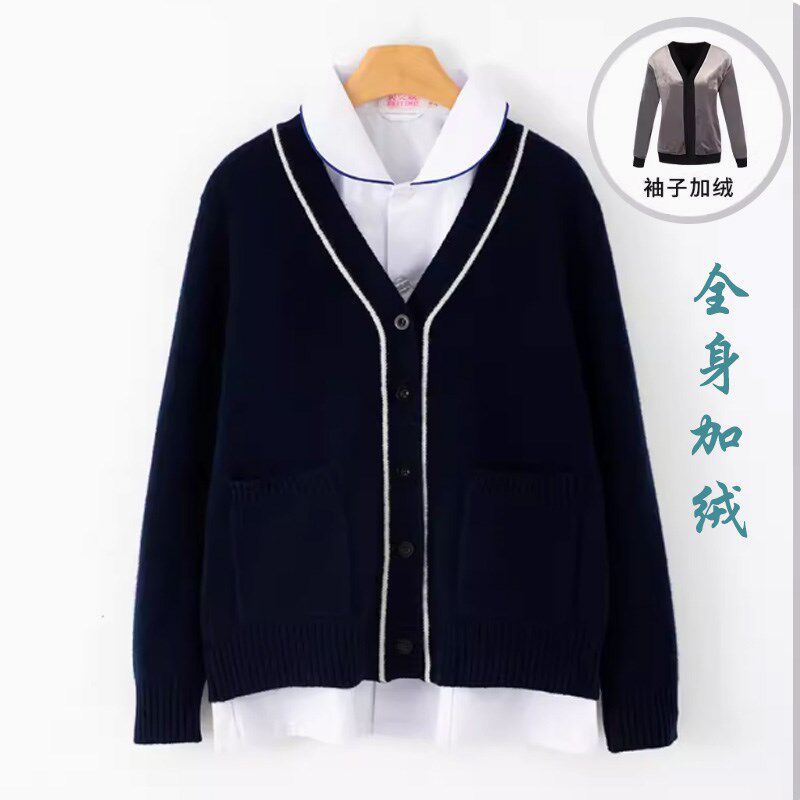 护士毛衣外套开衫加绒加厚医护医院护士服女秋冬季外搭不起球蓝色