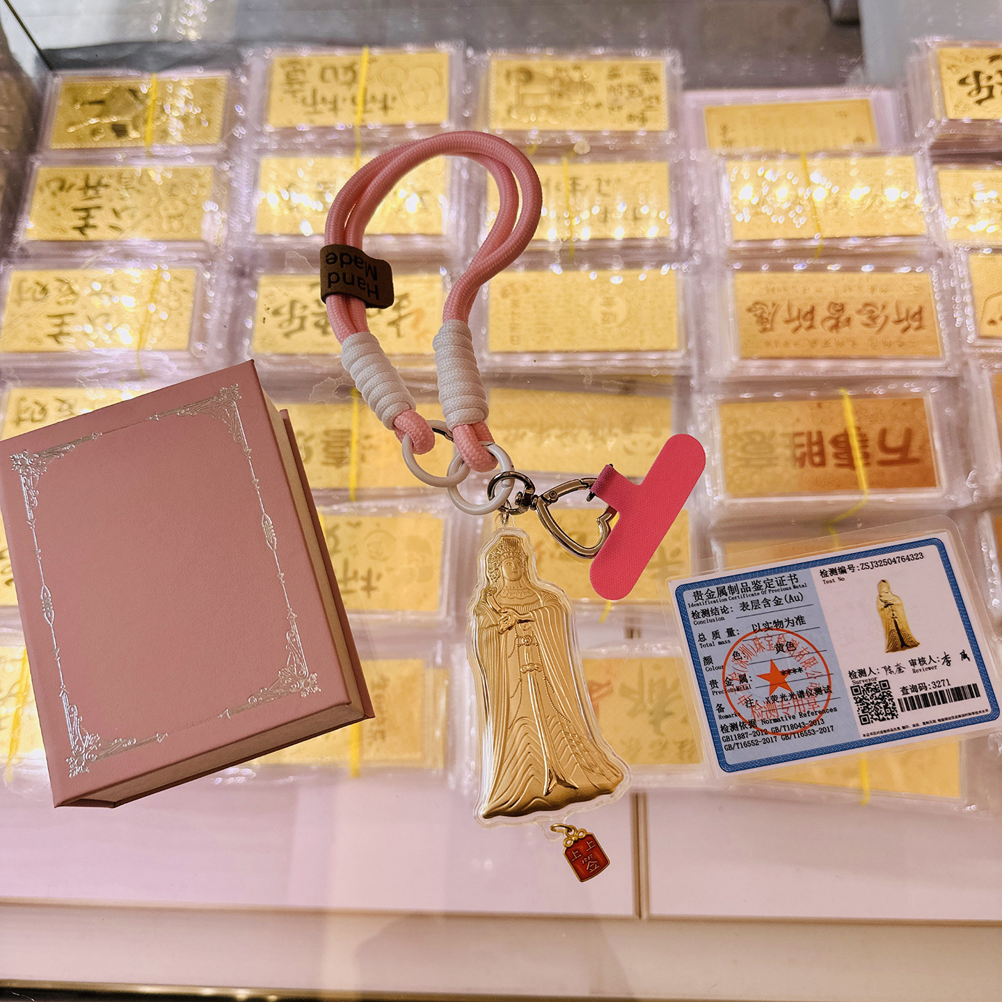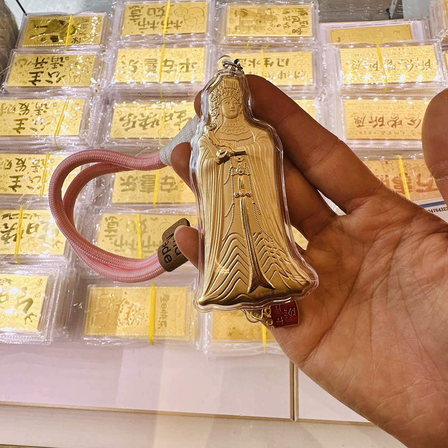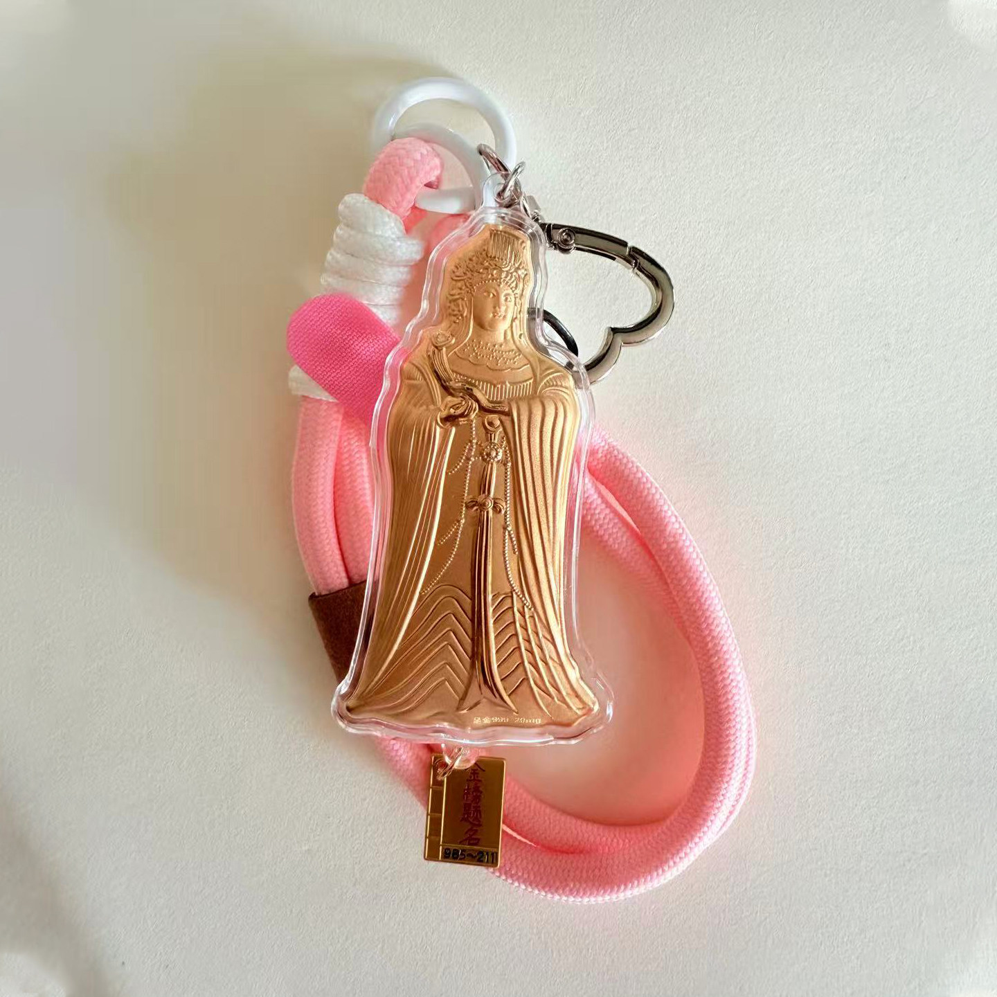 黄金妈祖钥匙扣999足金金榜题名手机挂坠包包挂件金片送女友礼物