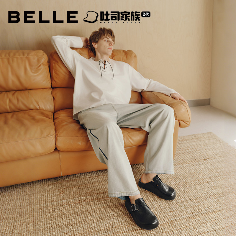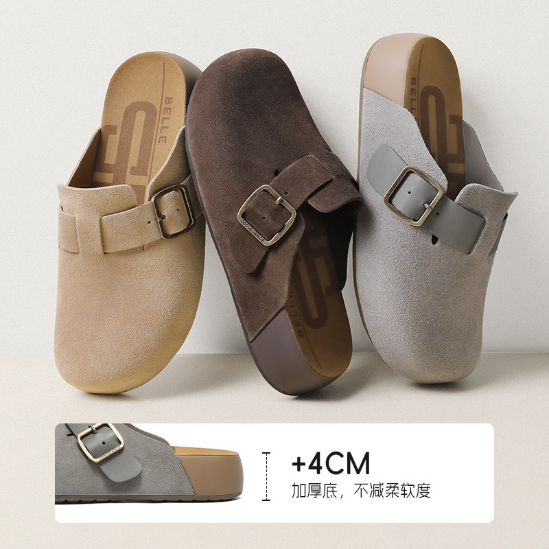 张凌赫同款百丽男鞋厚底半岛吐司2代勃肯鞋增高男士包头拖鞋8VR01