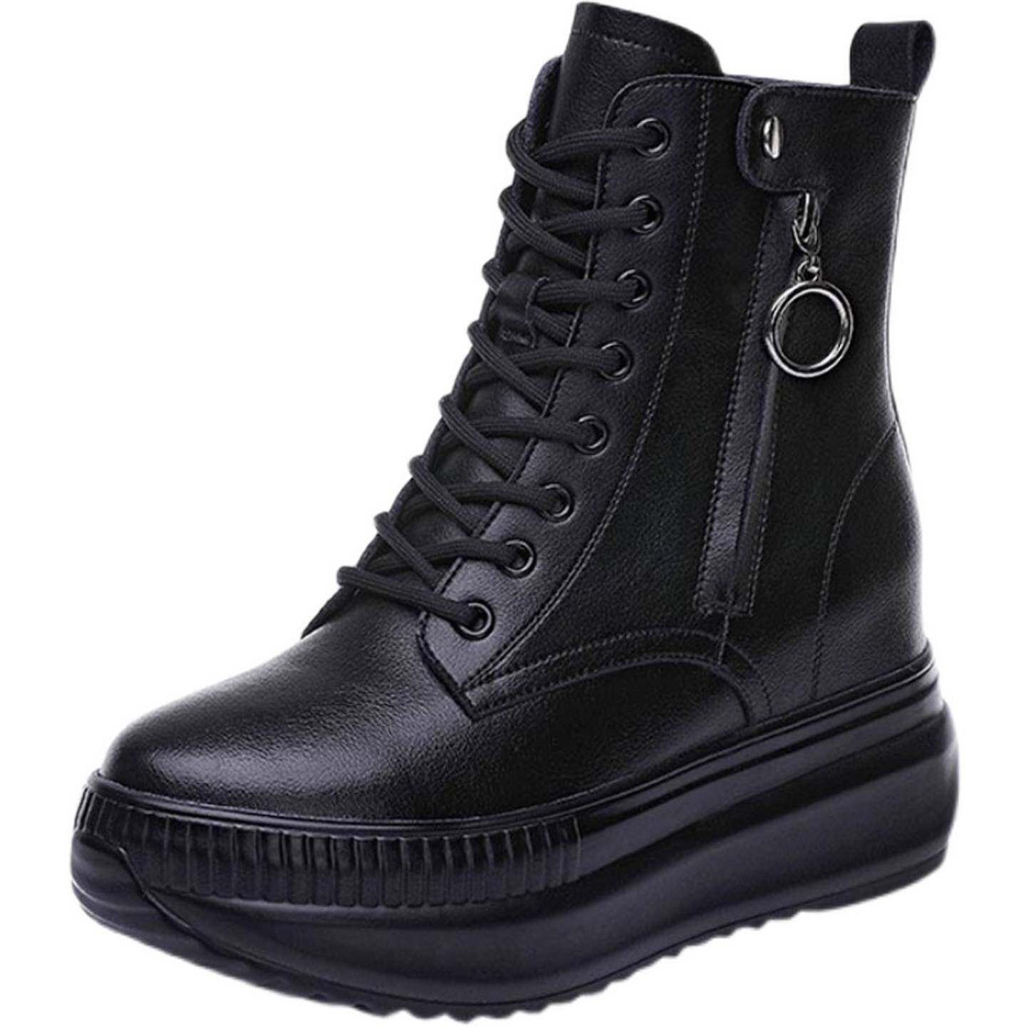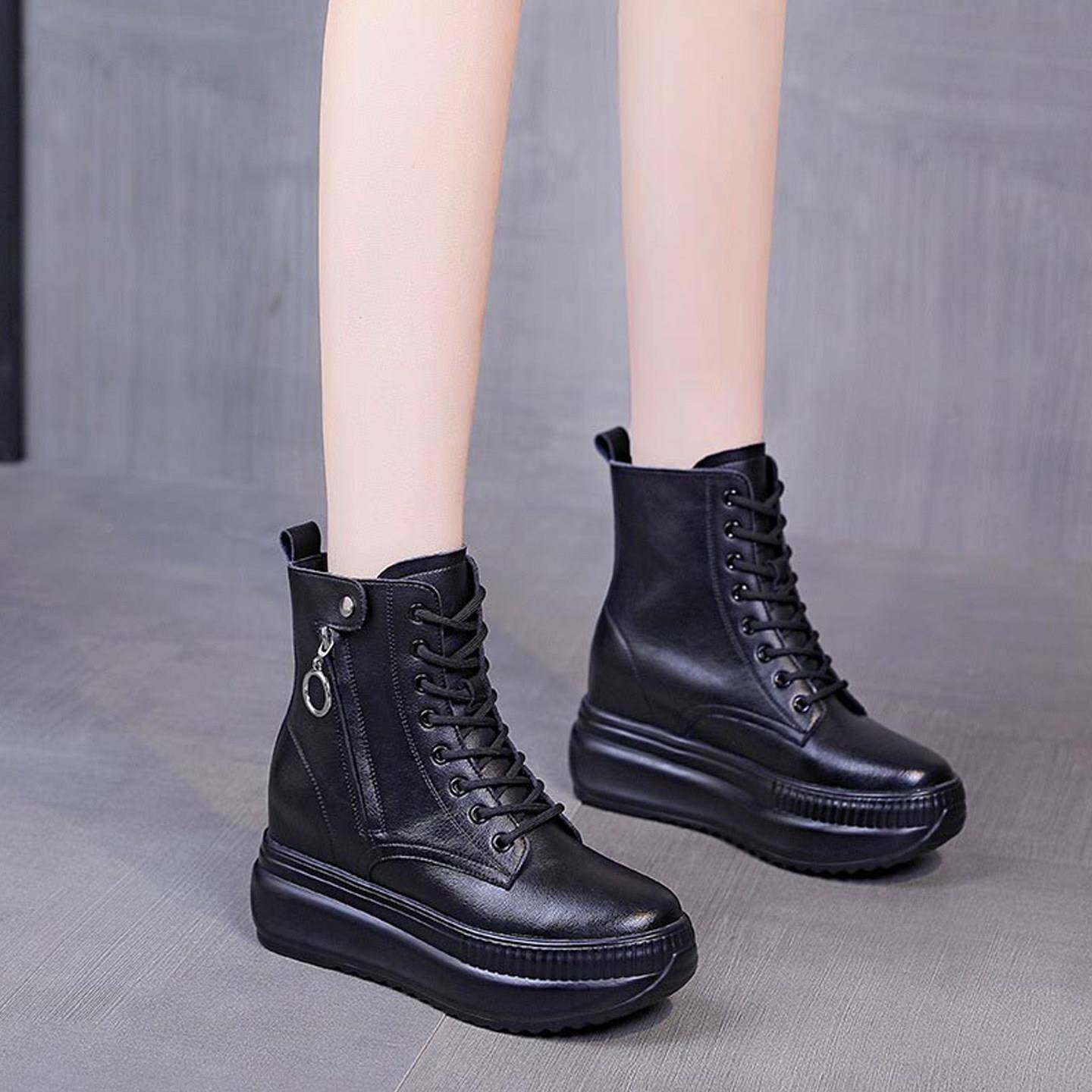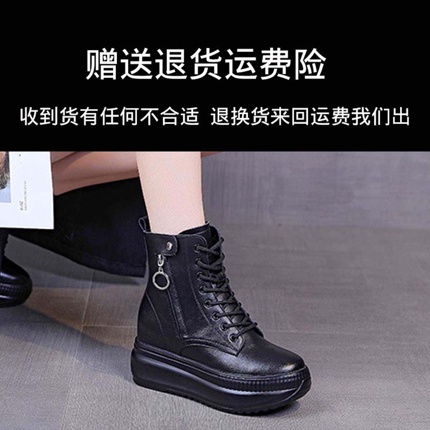 真皮内增高马丁靴女小个子2025年新款冬季加绒厚底8cm女款短靴子