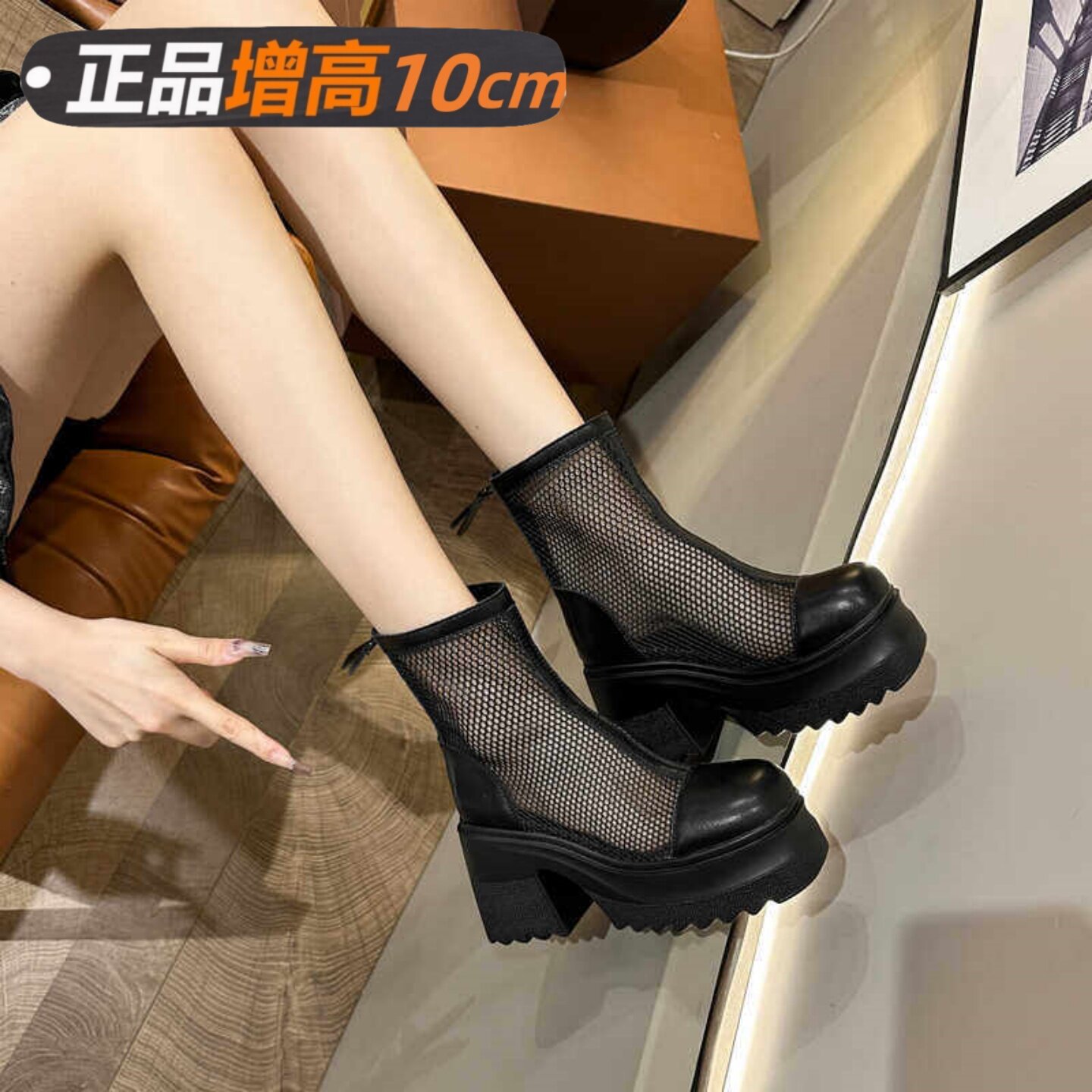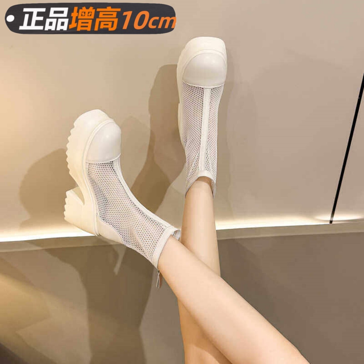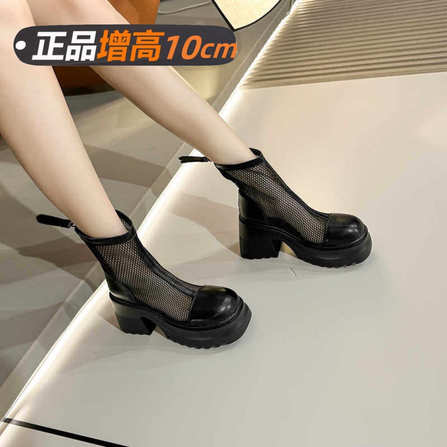 10cm真皮马丁靴女款2026夏季新款网纱网面小个子增高镂空凉短靴子
