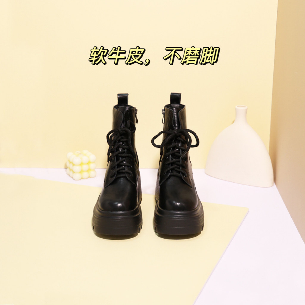 超厚底马丁靴女款2025新款英伦风高跟短靴小个子机车靴内增高女靴