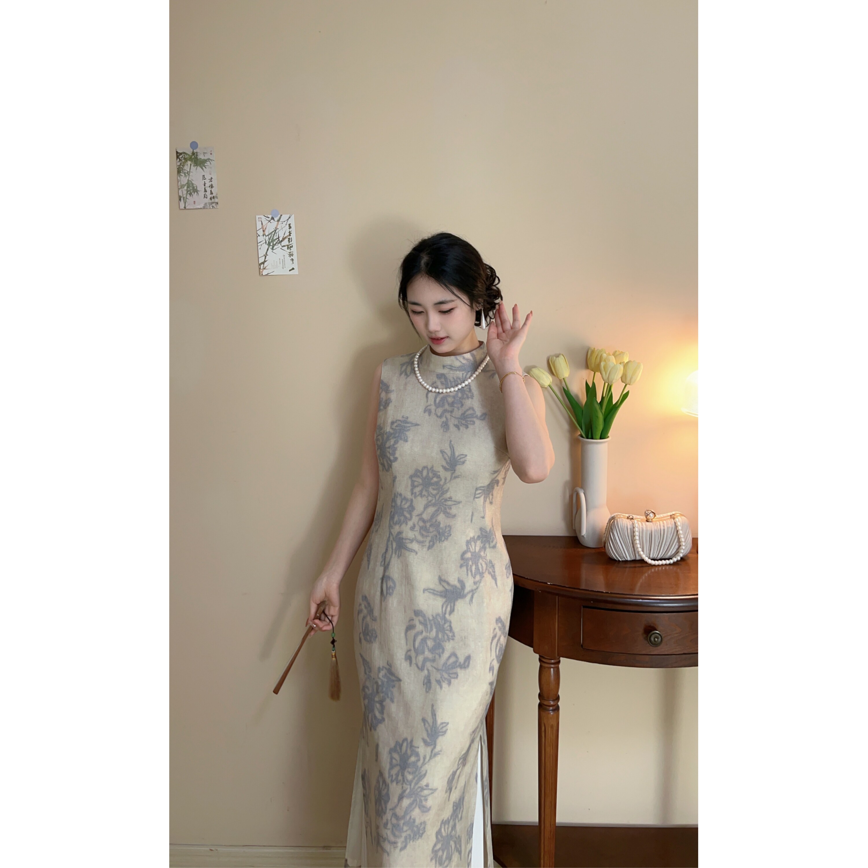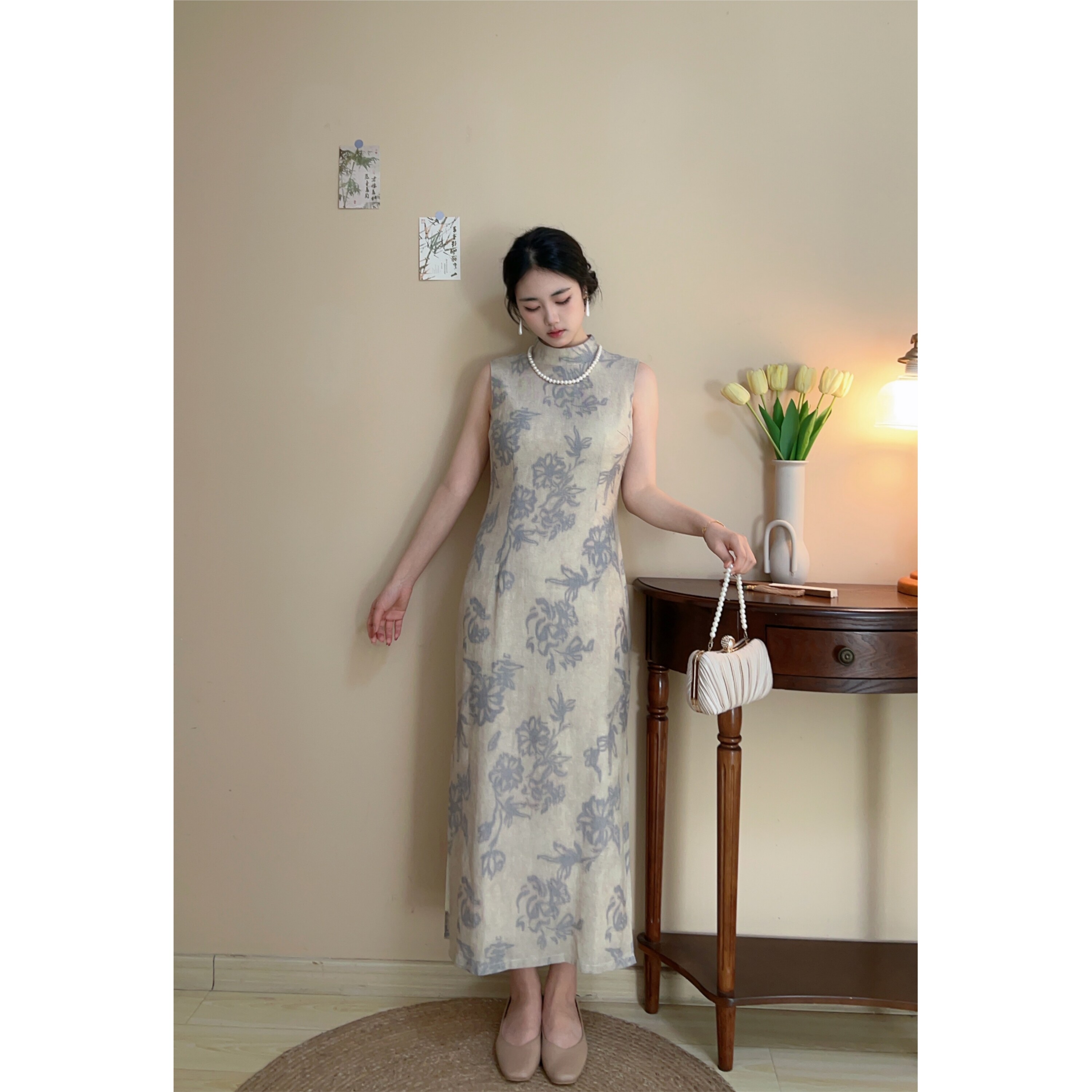云栖【自制款】新中式水墨棉麻文艺清冷感大码胖mm气质旗袍连衣裙