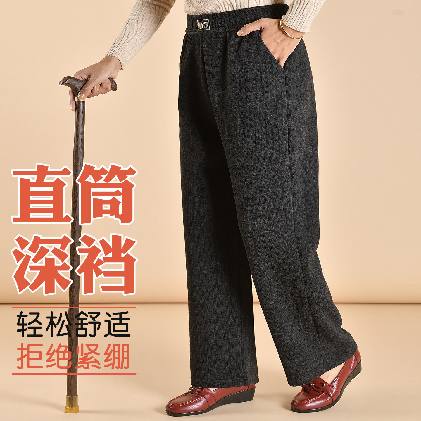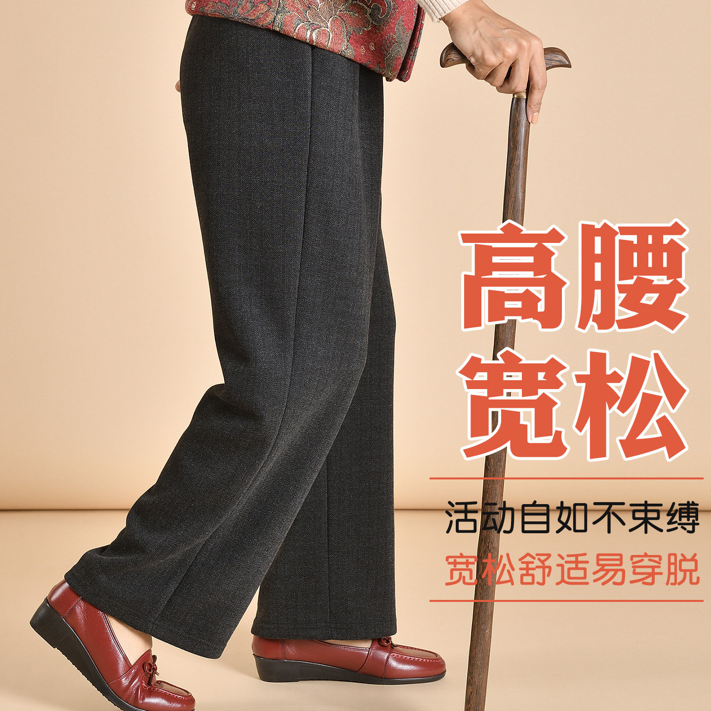 加肥加大码老年人妈妈加绒裤子冬加厚外穿秋款老太太奶奶直筒女裤