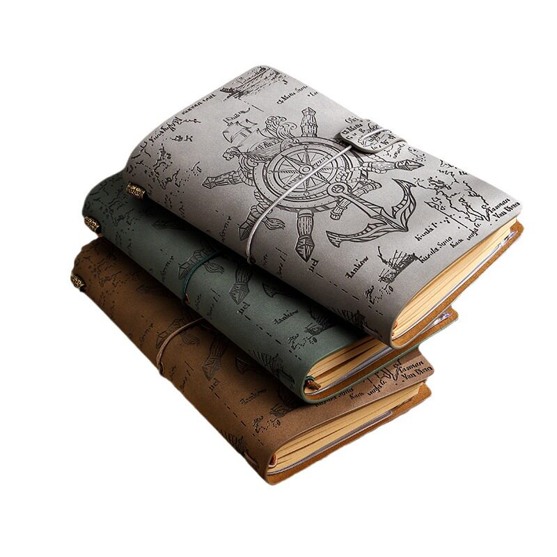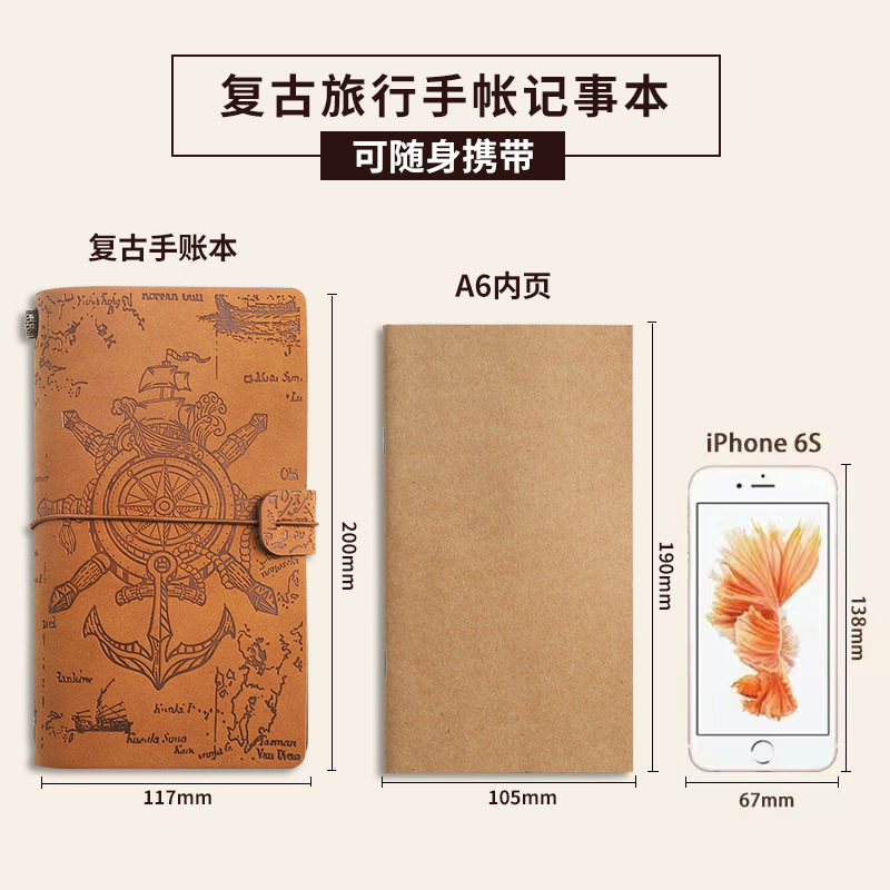 复古绑带欧式手帐本海航风格皮质定制手账牛皮纸记事本创意旅行日记本活页夹笔记本本子空白简约活页本可拆卸