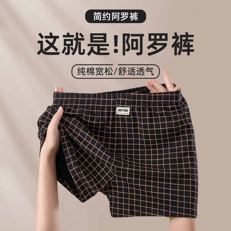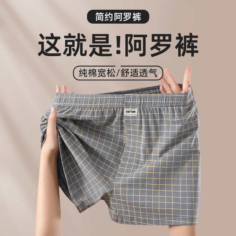 纯棉宽松男士内裤男款透气阿罗裤男生格子休闲短裤男款居家睡裤