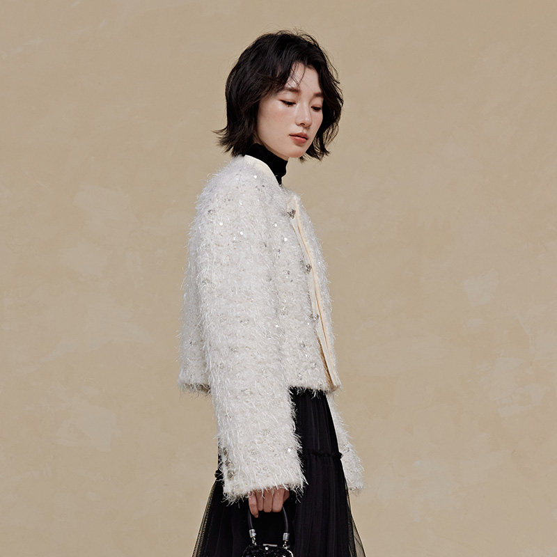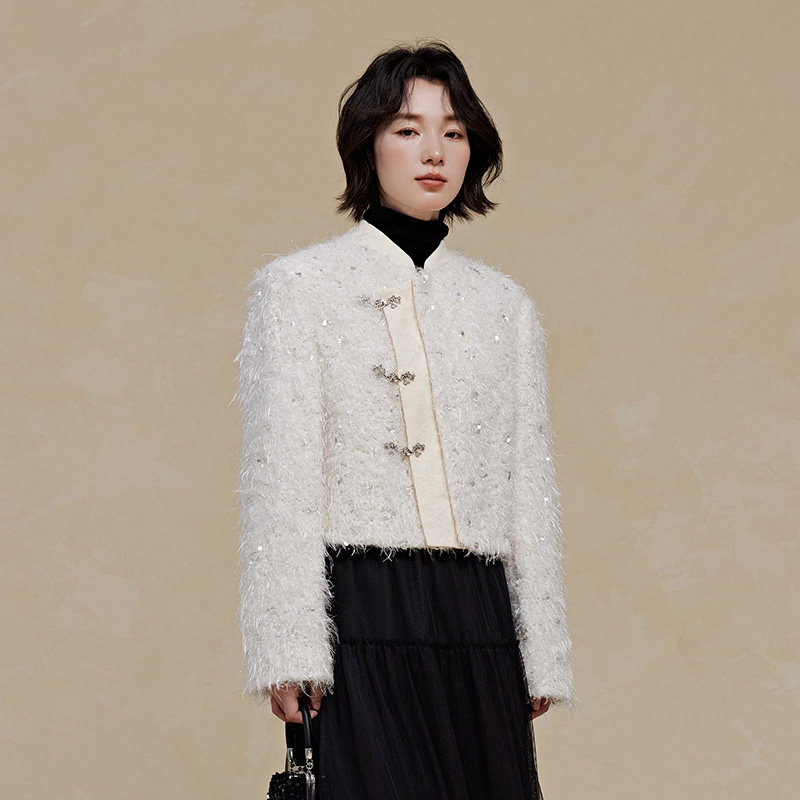 PIT小香风毛毛短外套2026春季新款国风新中式上衣外套女