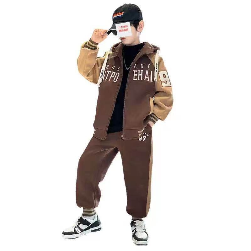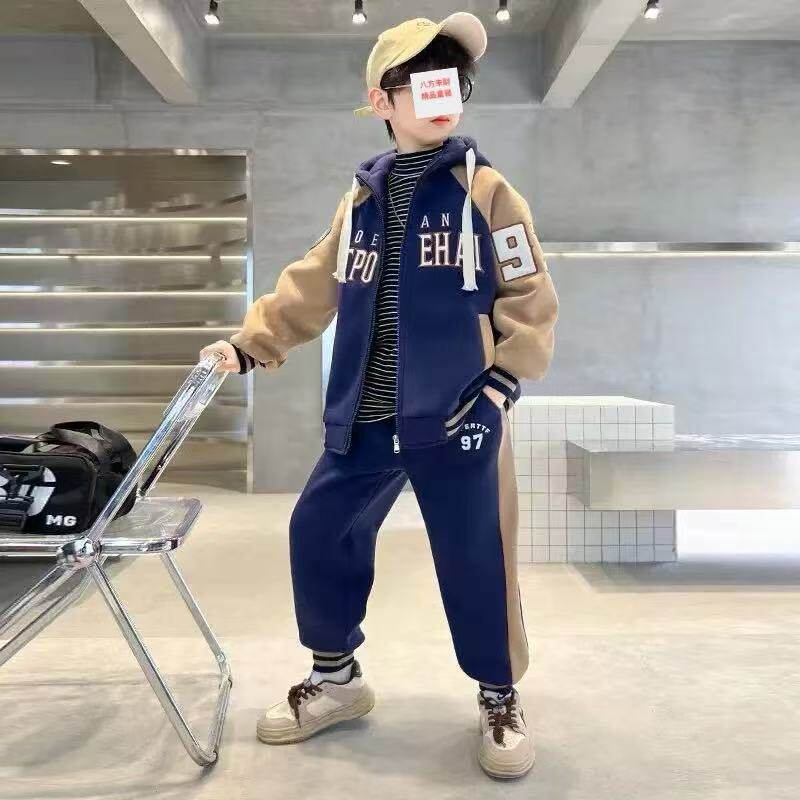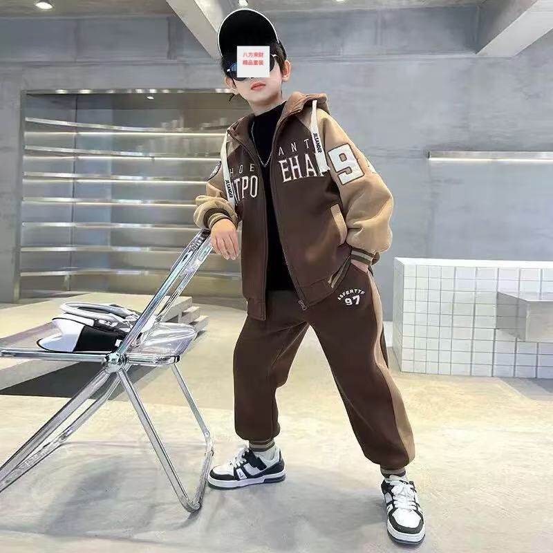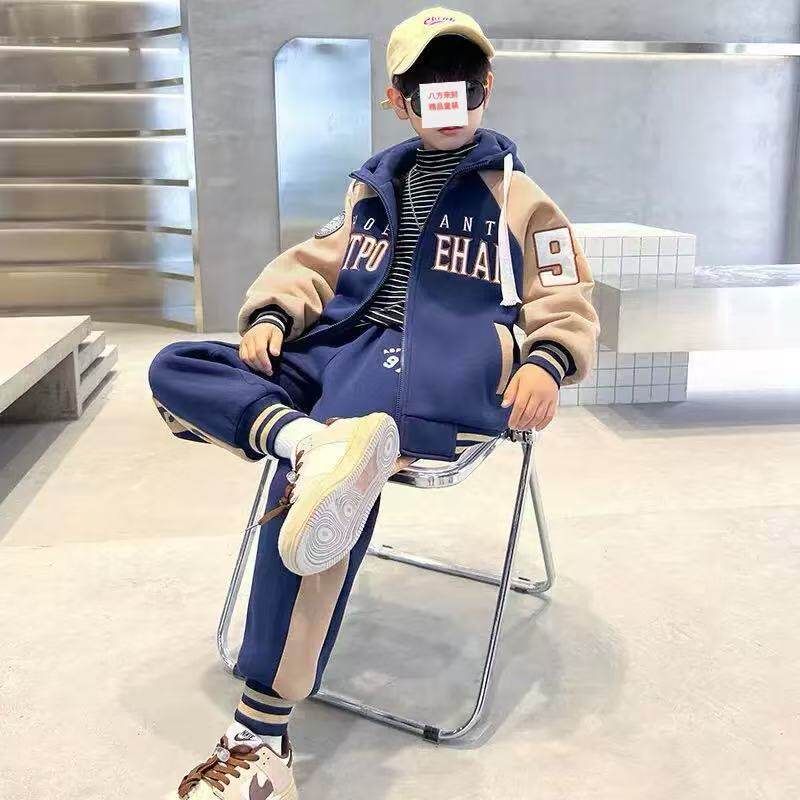 中大童秋冬长袖卫衣套装2026新款加绒加厚男孩两件套男童时尚酷帅