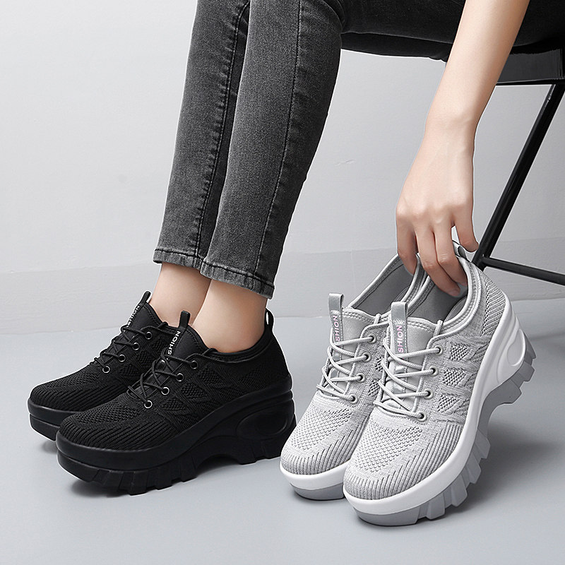 2026年夏季网眼透气鞋休闲运动鞋增高8厘米厚底女鞋百搭女鞋