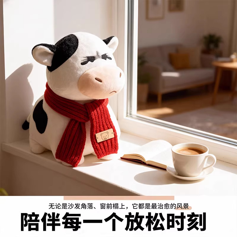 草地牛玩偶毛绒玩具可爱牛哞哞公仔搞怪抽象表情包生日礼物送女生