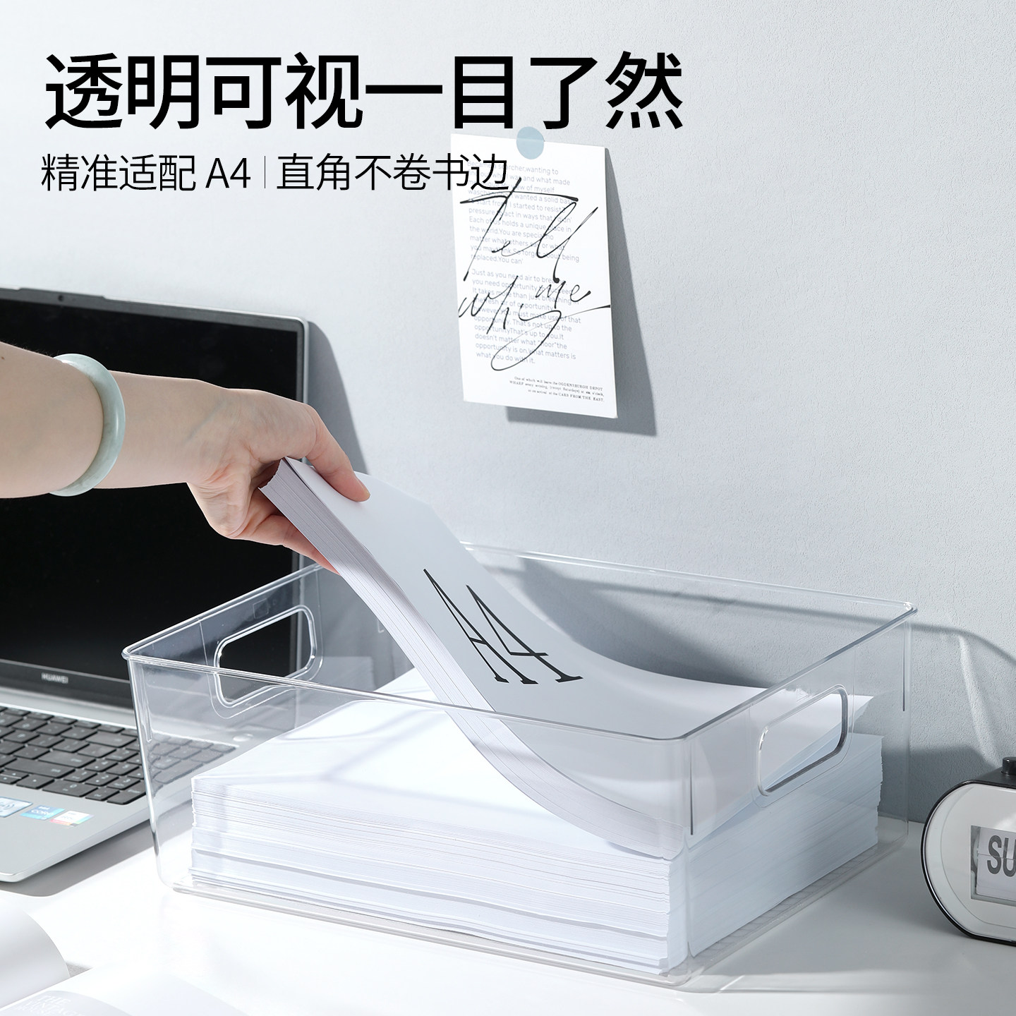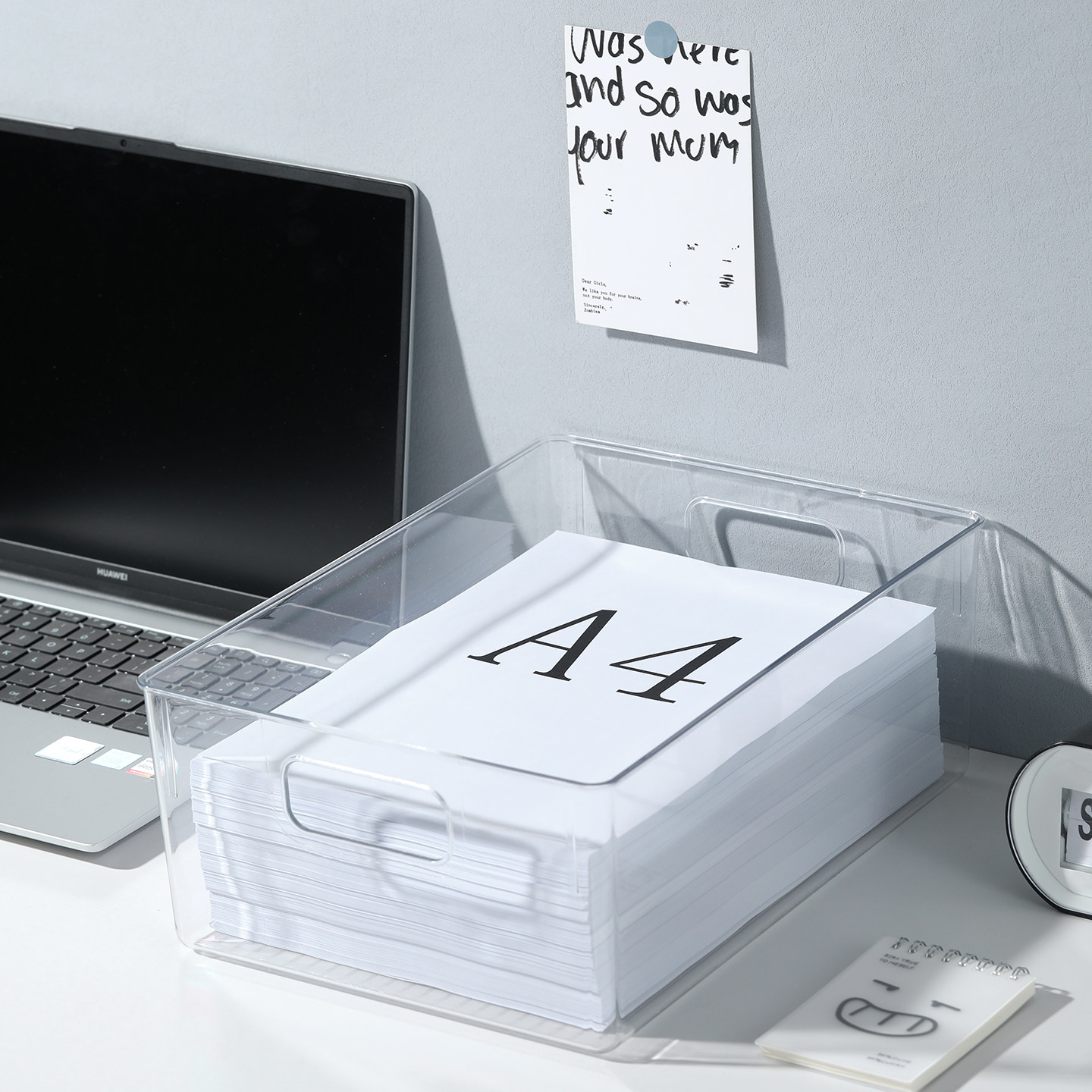 大容量A4纸张收纳盒透明文件打印资料收纳筐资料档案整理篮篓4879