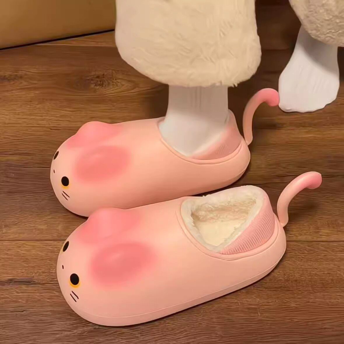 可爱猫咪棉拖鞋女款可外穿冬季居家加绒保暖包跟厚底防滑防水棉鞋