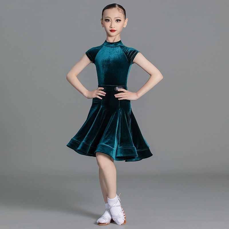 儿童拉丁舞服比赛演出标准规定服少儿高级感套装女童短袖大摆裙新