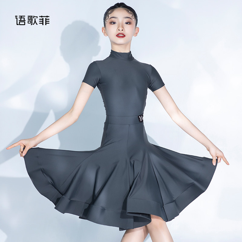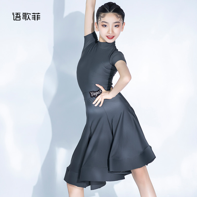 语歌菲拉丁舞比赛服女童夏季短袖专业国标儿童标准分体高领规定服