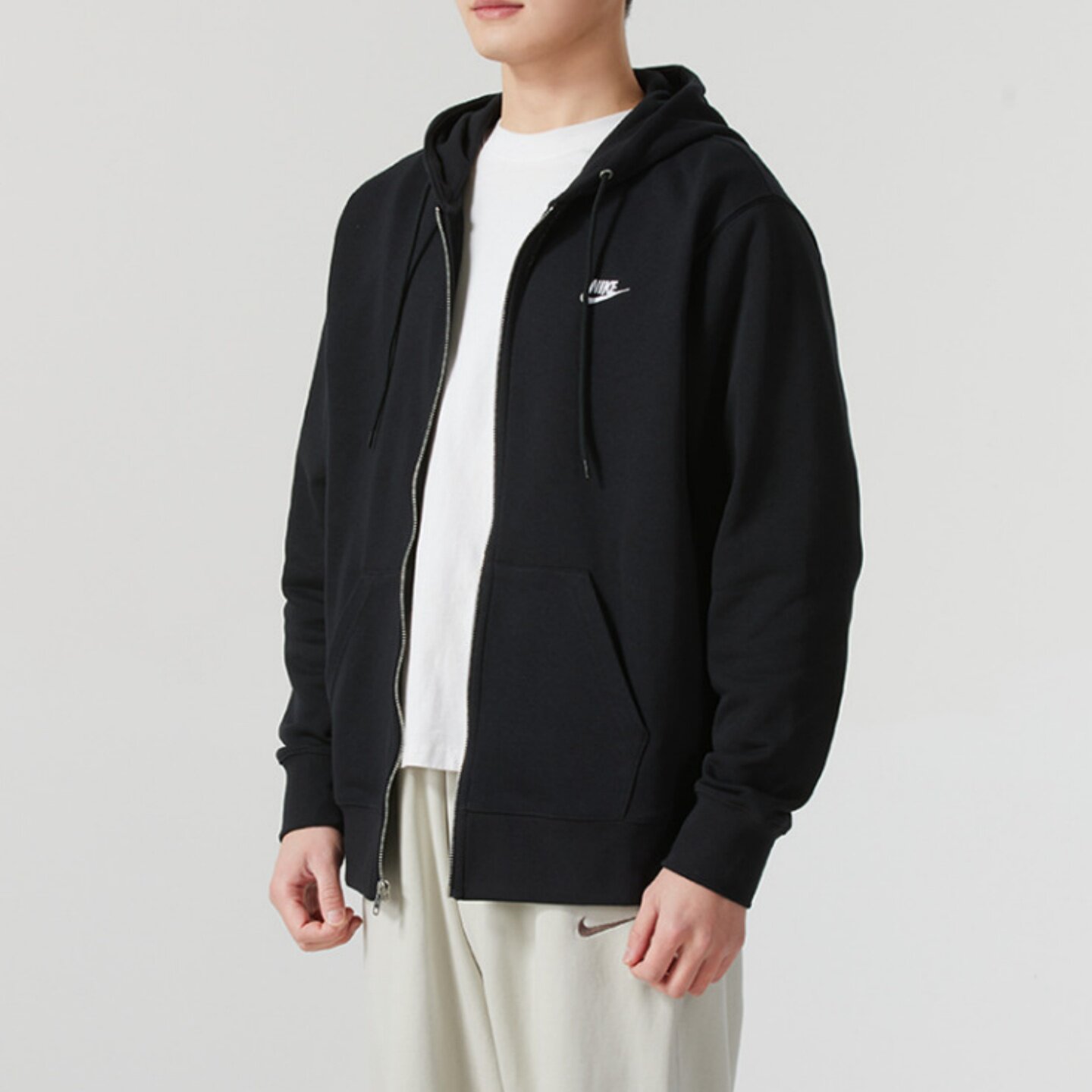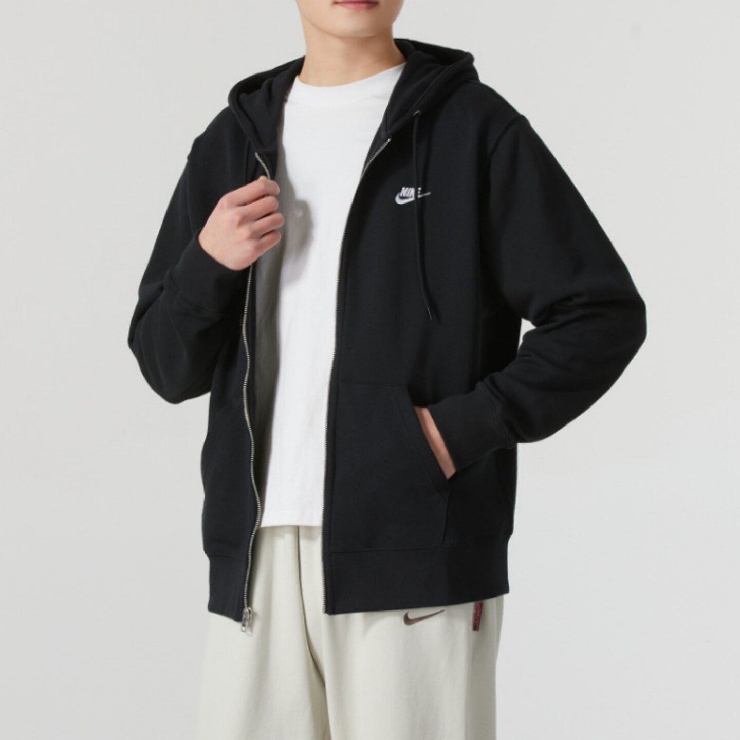 Nike Club 拉链开衫法式长袖连帽外套卫衣 男款 黑色FN3885-010