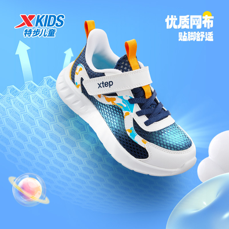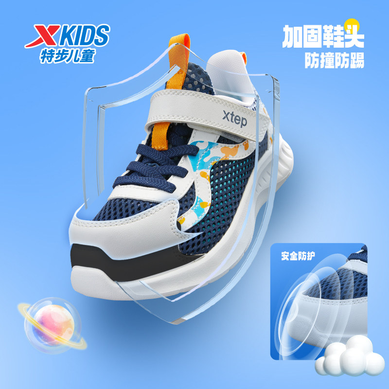 特步童鞋夏季款小童网面透气儿童运动鞋子男童魔术贴防撞防踢跑鞋