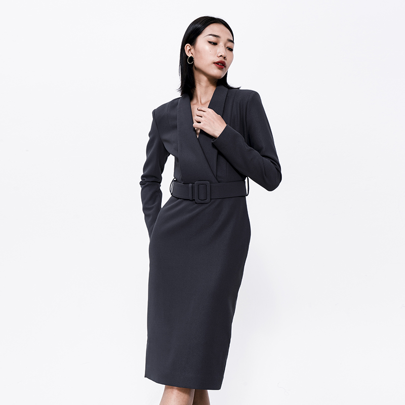 311线报网描述:高端气质知性端庄气质宽腰带OL连衣裙