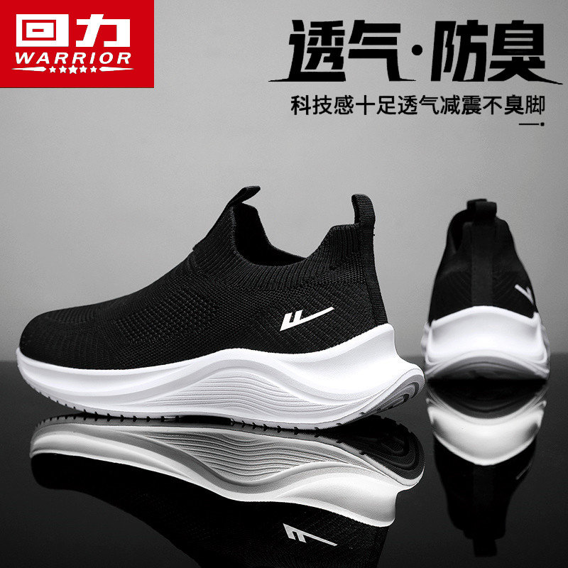 回力男鞋夏季透气防臭飞织网面运动网鞋一脚蹬运动跑步增高老爹鞋