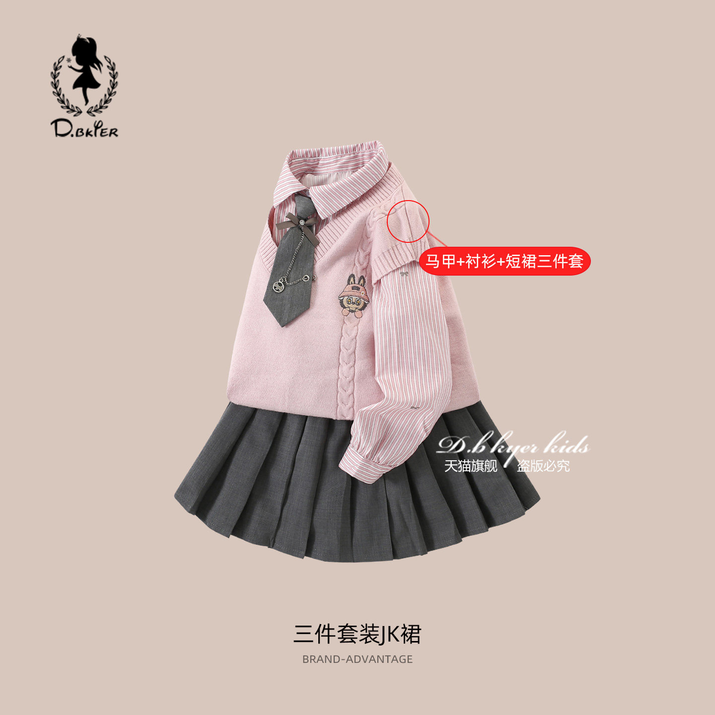 DeerBell女大童套装春装儿童学院风初中生校服班服jk裙子三件套装