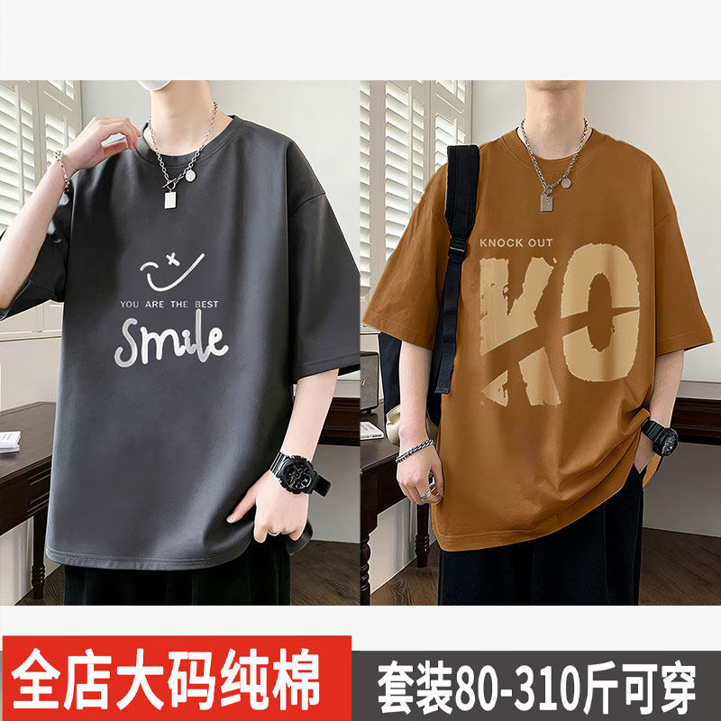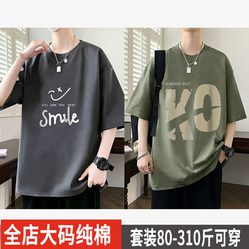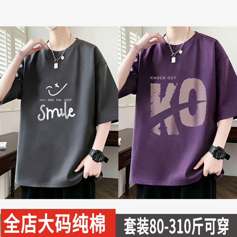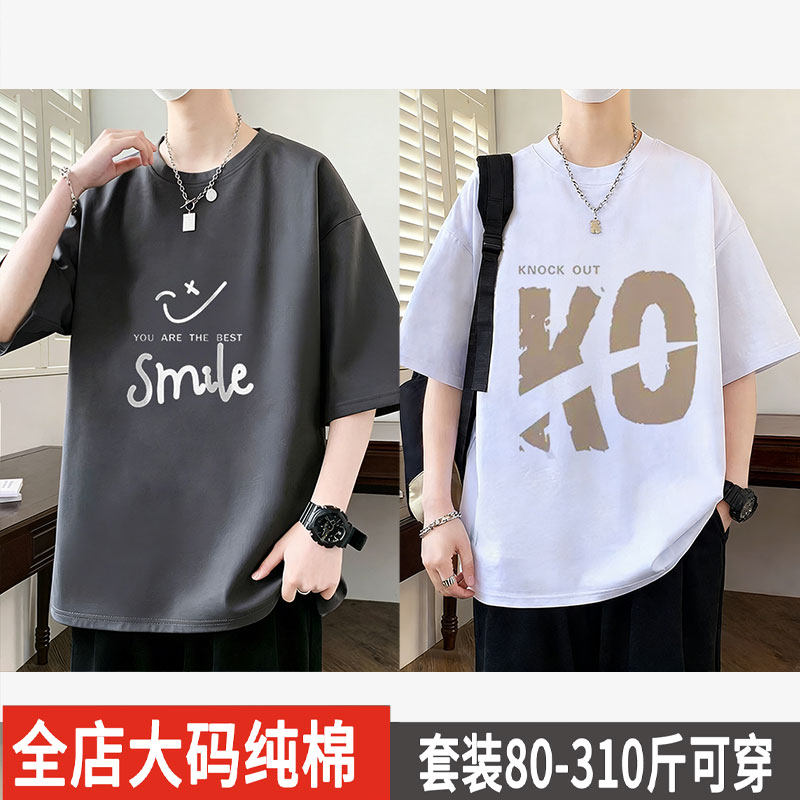 300斤大码纯棉短袖男款2026新款潮流体恤衫半袖夏季青少年圆领t恤