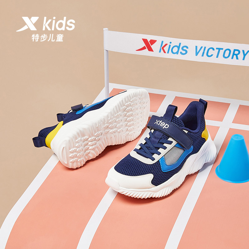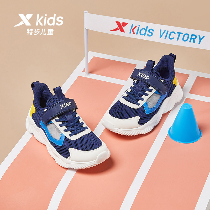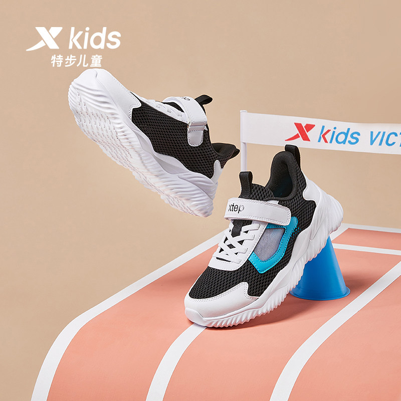 特步童鞋夏季新款男女童网面透气跑步鞋中大童魔术贴儿童运动鞋子