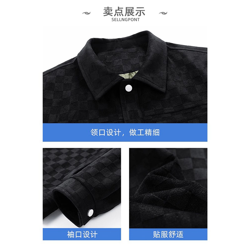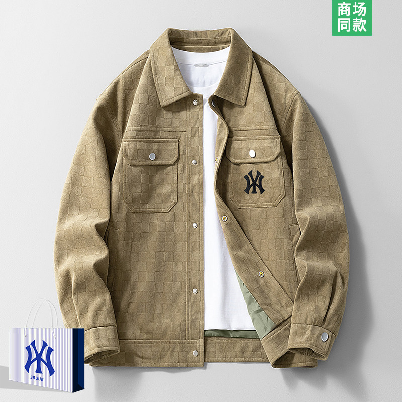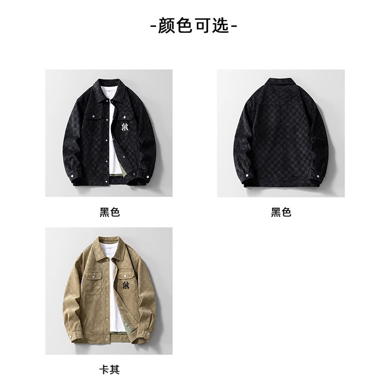 【奥特莱斯】美式潮牌刺绣外套男款春秋季2026新款棋盘格夹克上衣