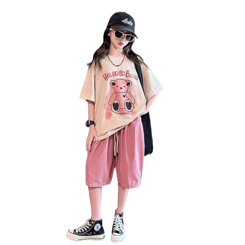 女童时尚套装2026夏装新款洋气时髦中大童学生休闲短袖短裤两件套