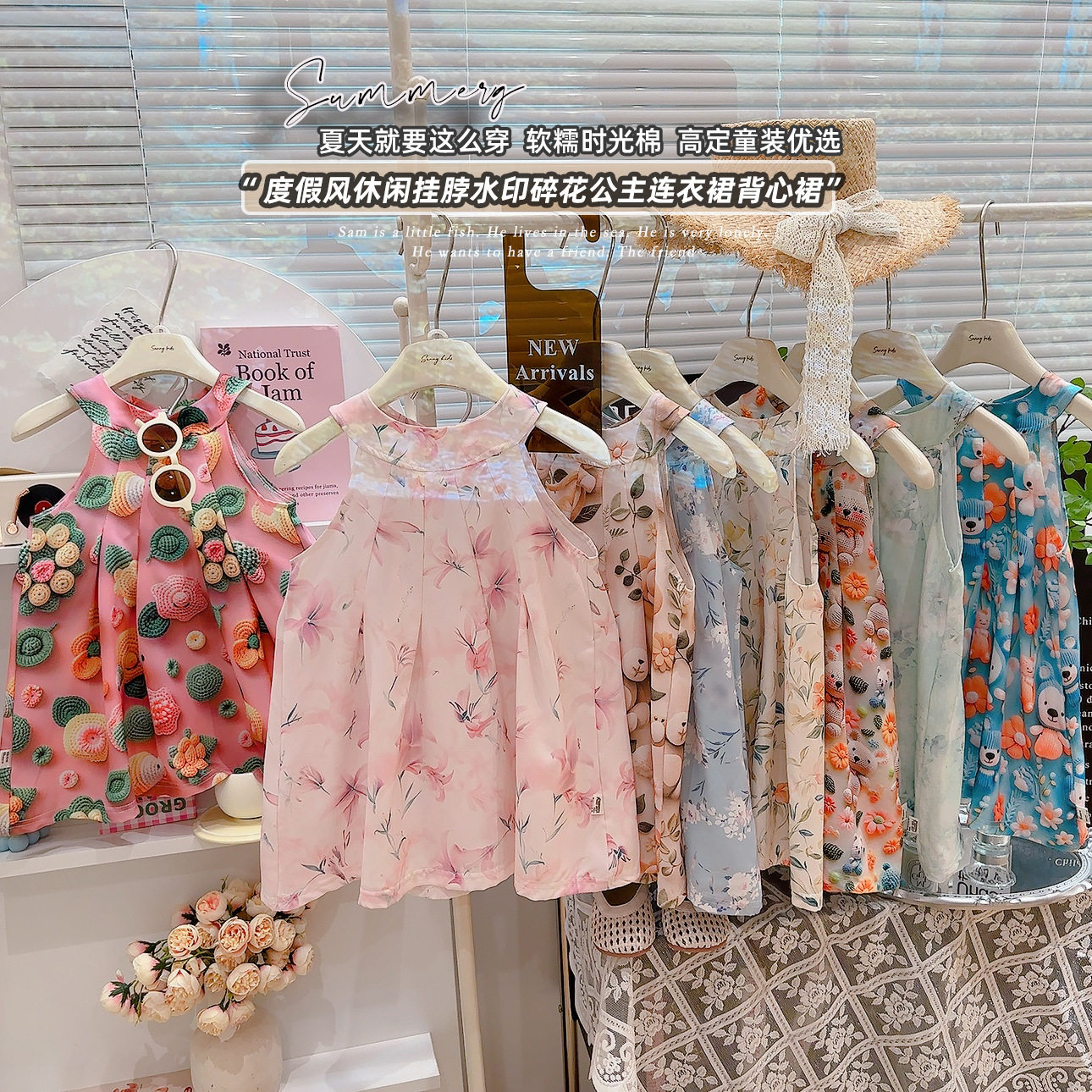 外贸儿童夏季露肩雪纺3D小女孩公主裙新款女童连衣裙3-5-7-8岁6岁