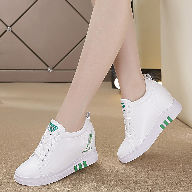 配裙子的小白鞋内增高女鞋8cm镂空透气百搭休闲厚底坡跟夏天白鞋