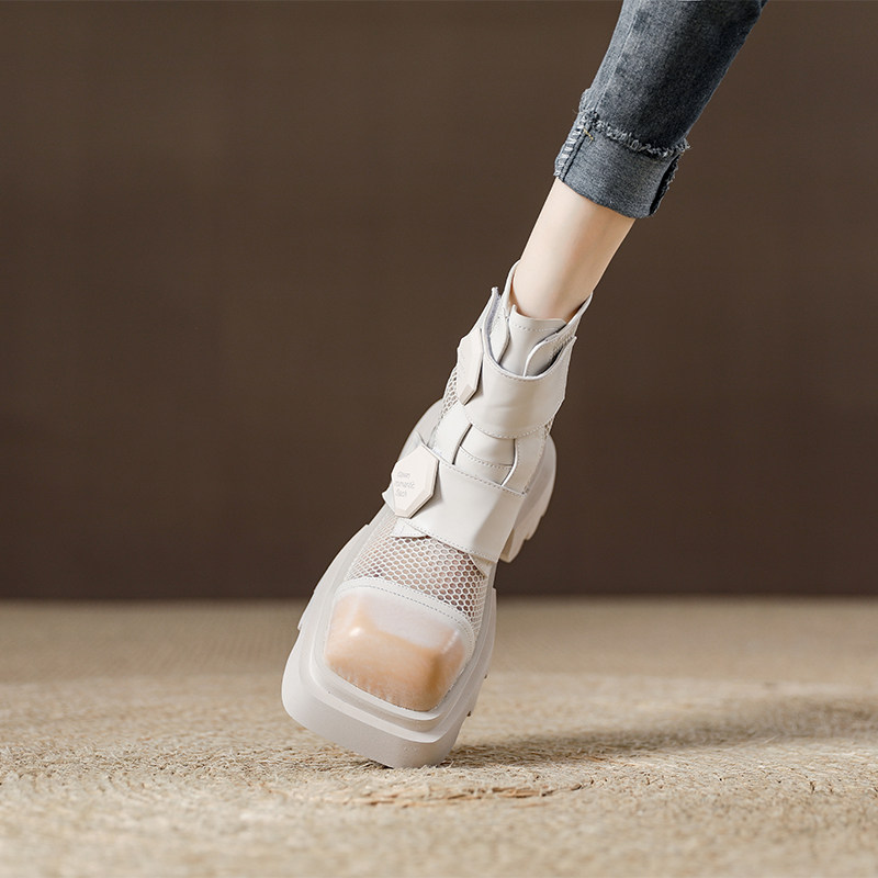 厚底显瘦透气网面爆款欧洲站马丁靴短筒2025年夏天新款配裙子凉鞋
