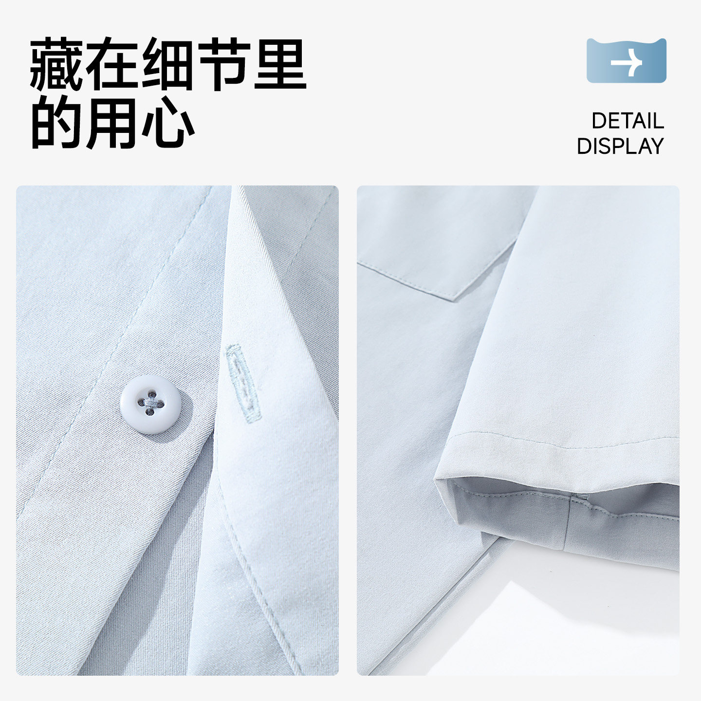 猫人天蓝色衬衫男款短袖2026夏季新款青少年潮流痞帅衬衣外套男Q