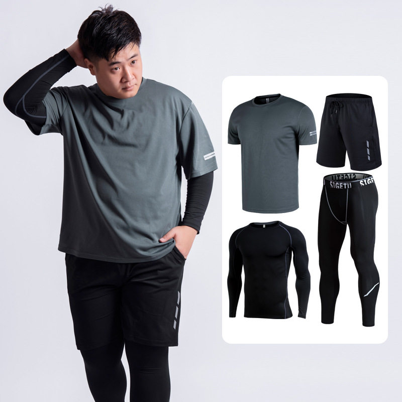 健身房运动服套装夏季宽松大码速干胖子加肥加大跑步训练健身服男