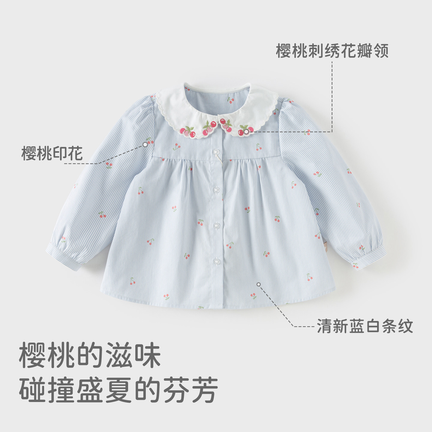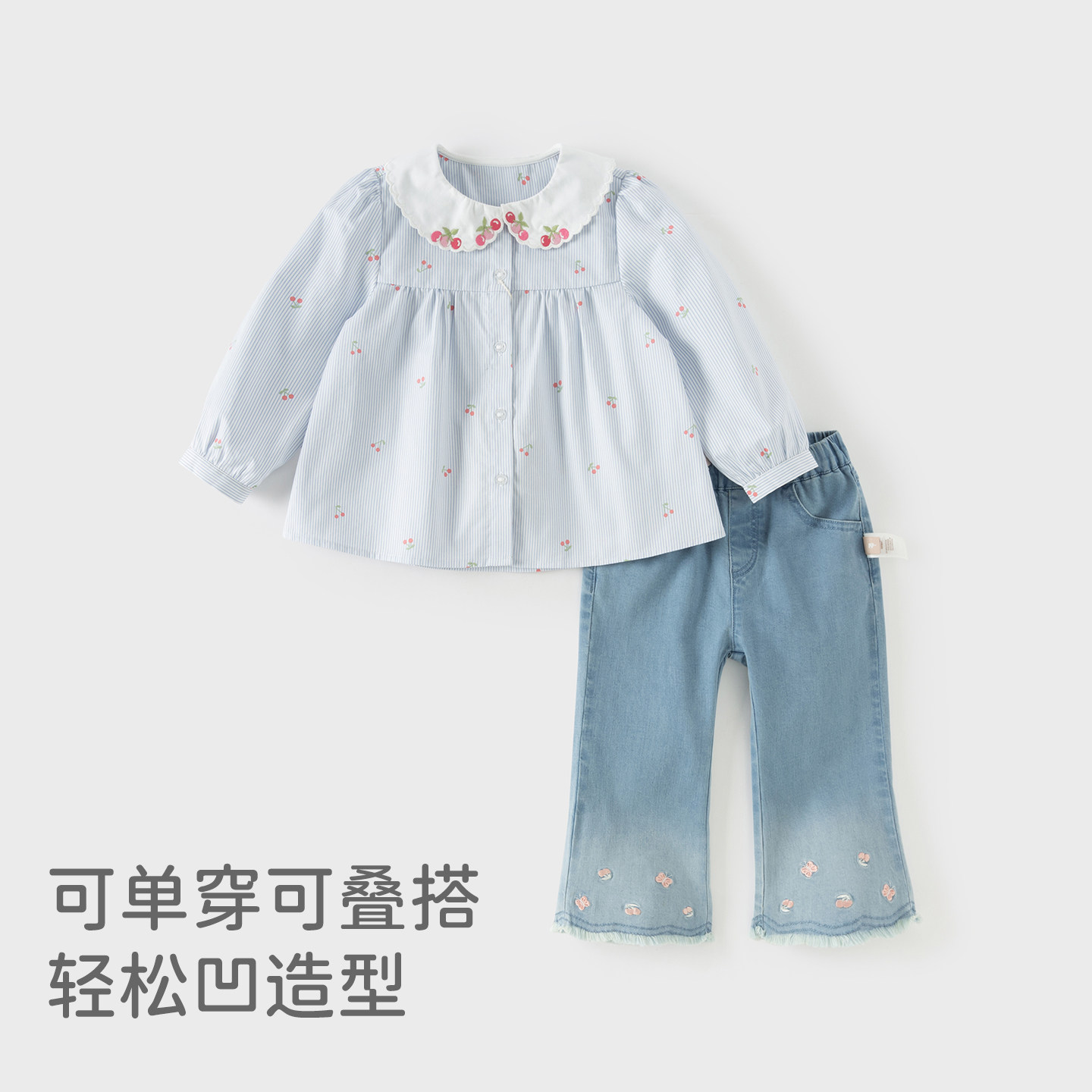 戴维贝拉女童纯棉衬衫宝宝A类条纹衬衣2026新款春装儿童洋气上衣