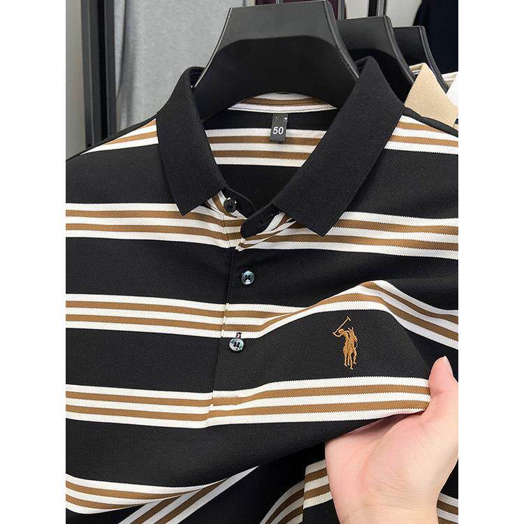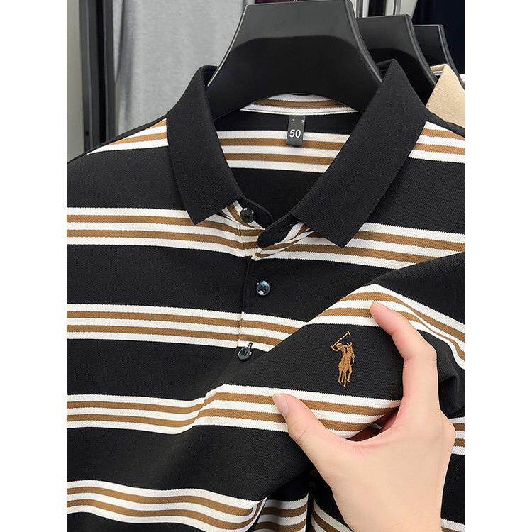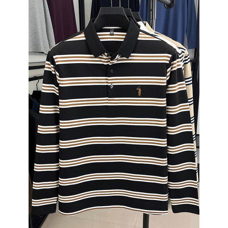 条纹polo衫男款长袖2025秋季新款刺绣翻领上衣宽松百搭休闲T恤衫