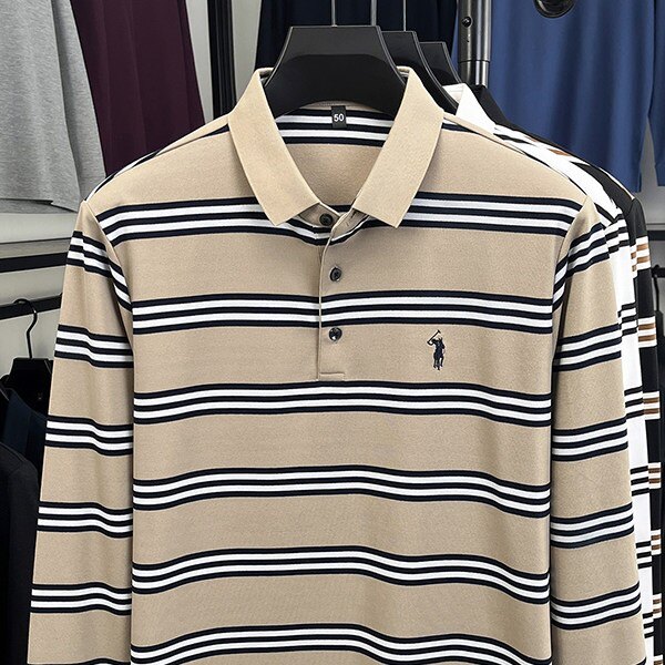 保罗棉质条纹polo衫男款长袖2026新款刺绣翻领春秋款上衣品牌t恤