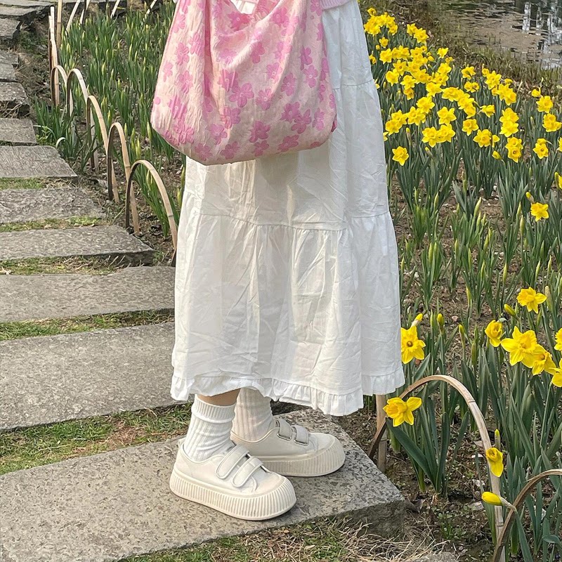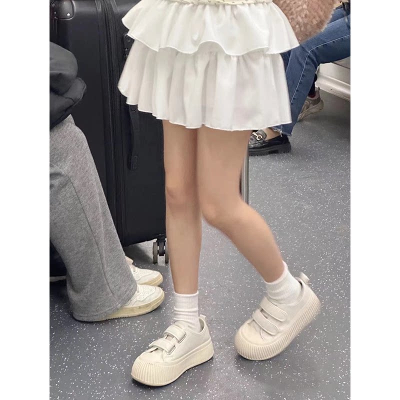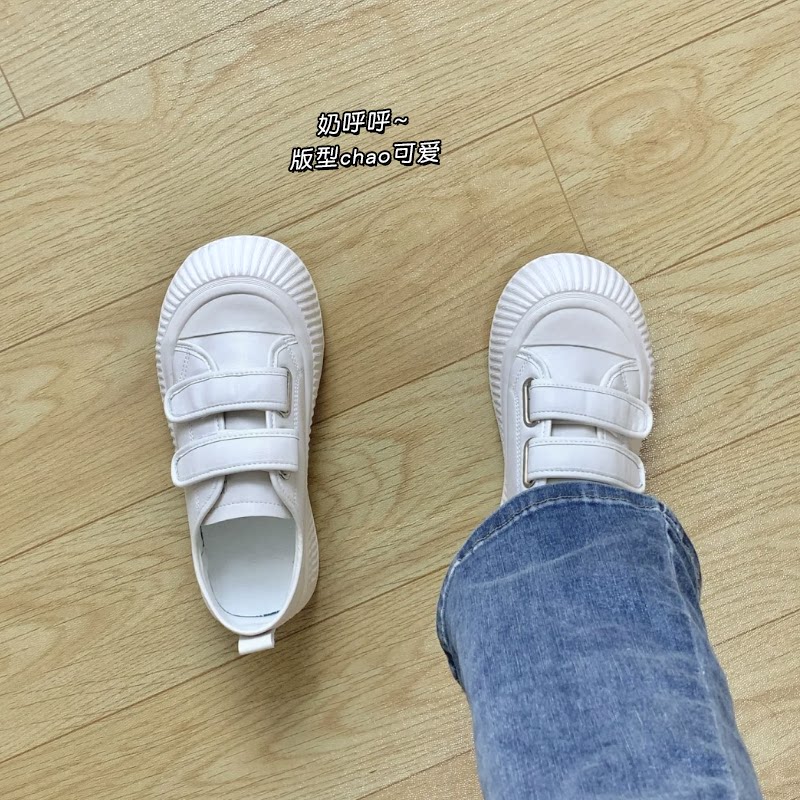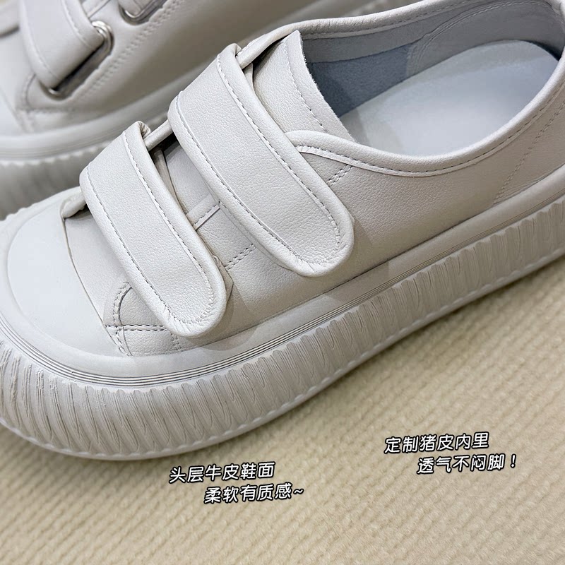 魔术贴小白鞋女夏季配裙子2026新款爆款真皮厚底百搭可爱大头鞋子