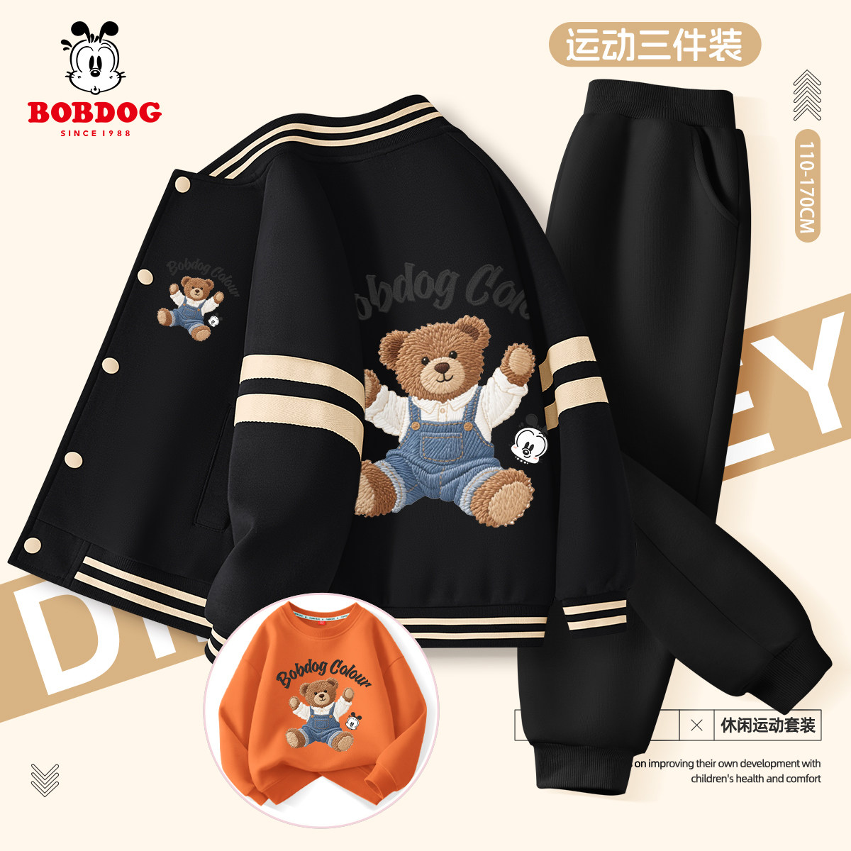巴布豆童装男童棒球服套装2026新款时髦大童外套早春休闲儿童春装