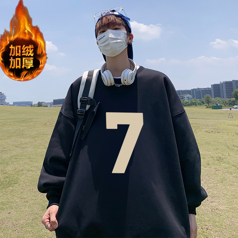 冬季男士加绒无帽卫衣纯棉青少年初中高中学生上衣服不带帽秋冬款