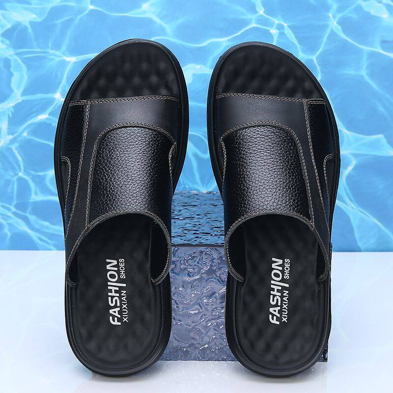 真皮拖鞋男全牛皮夏季外穿软皮软底舒适男凉拖头层牛皮男式皮拖鞋