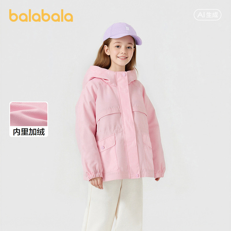 巴拉巴拉童装儿童外套女童上衣2026新款春装户外防风防护连帽加绒