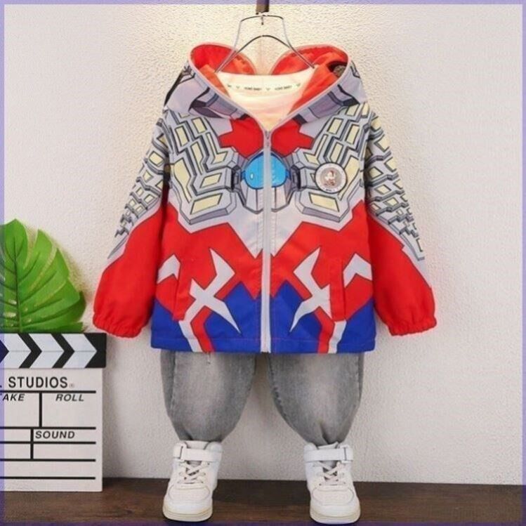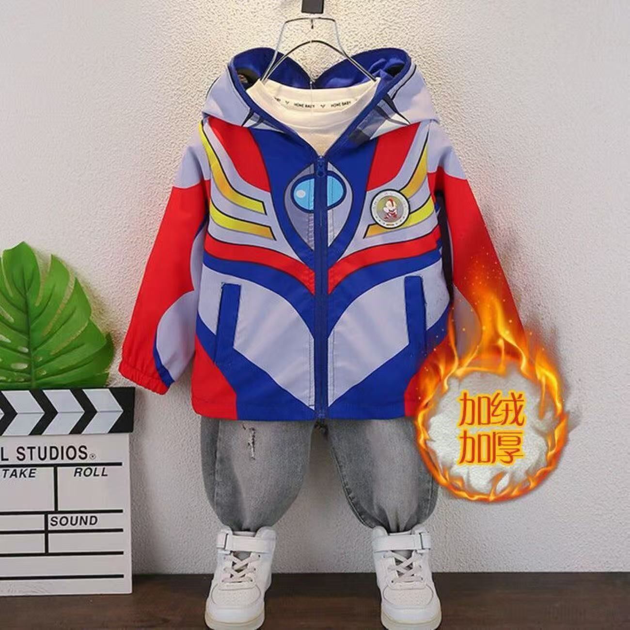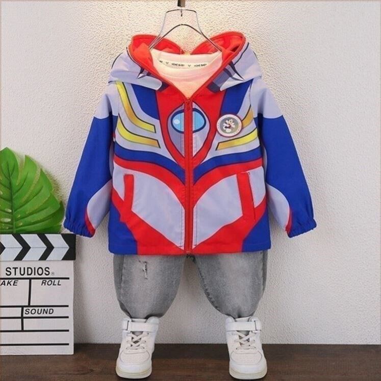 2025秋冬女童赛罗奥特曼发光外套儿童加绒男童冲锋衣迪迦连帽上衣