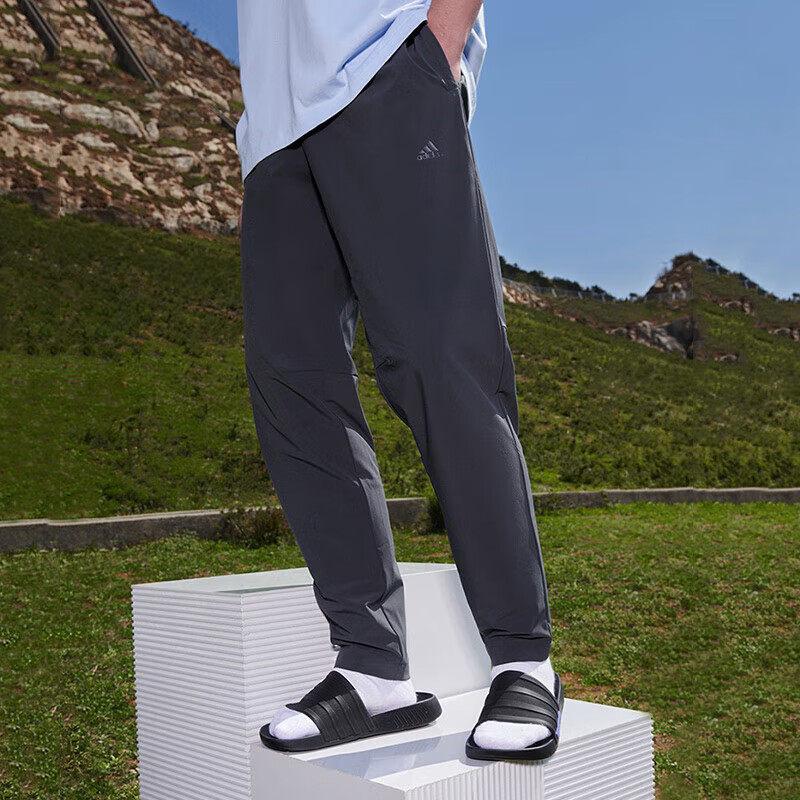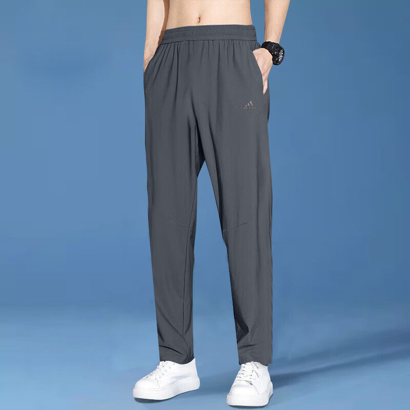 阿迪达斯灰色男裤夏季新款速干运动裤子男薄款梭织骑行男士跑步裤