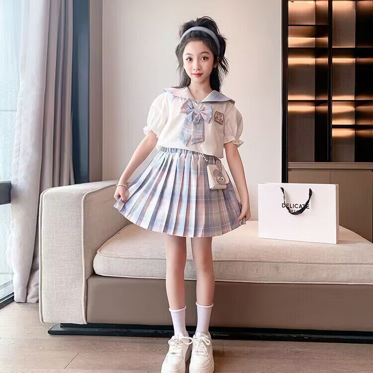 女童时尚套装洋气时髦裙子儿童学院风短裙女孩夏季大童连衣裙