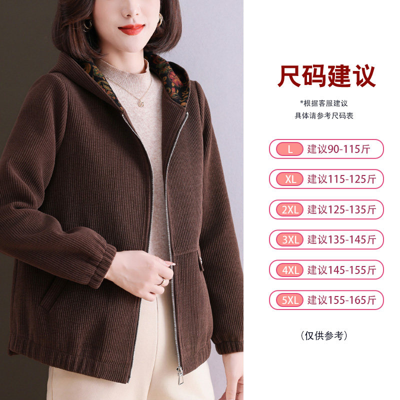 妈妈春装2026新款外套灯芯绒连帽休闲时尚宽松中老年春秋季上衣女