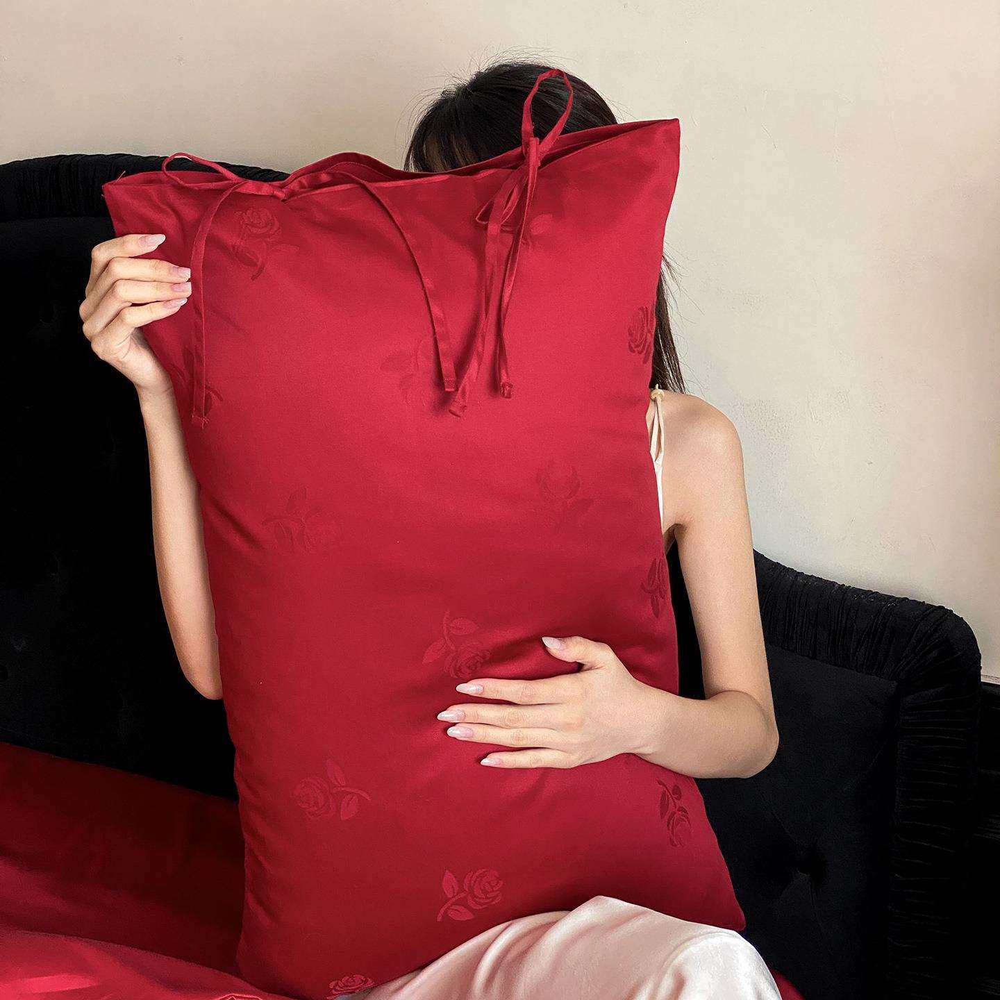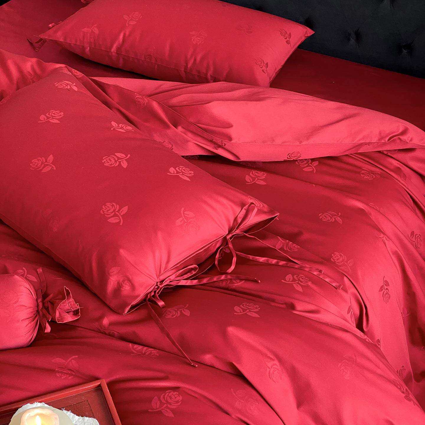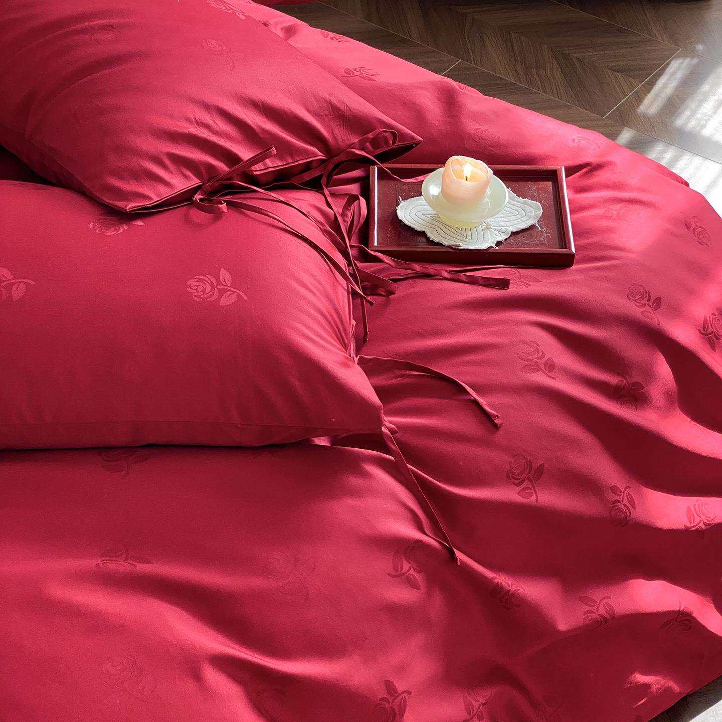 【维嘉欧】喜庆100S长绒棉结婚四件套纯棉全棉提花被罩婚庆柔软