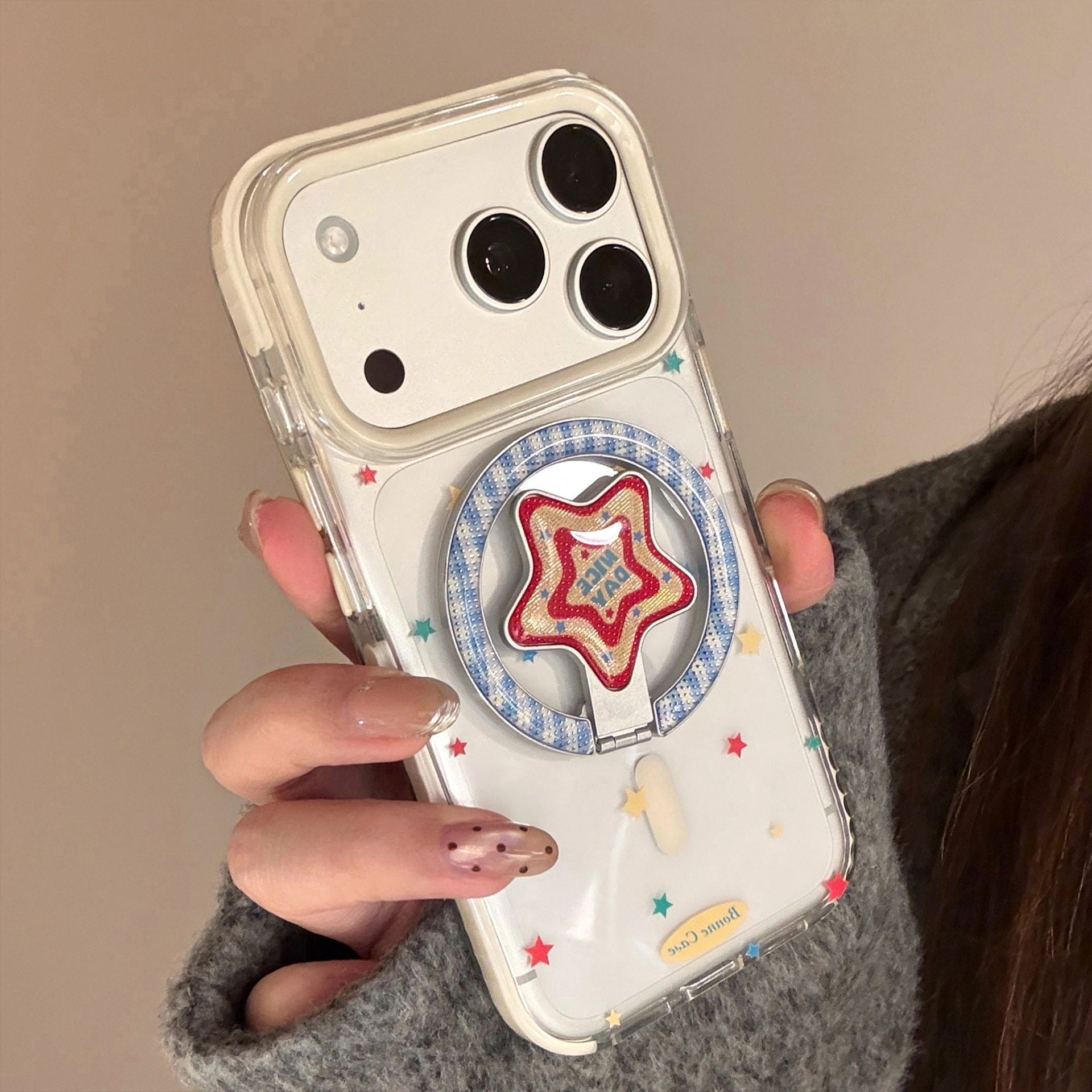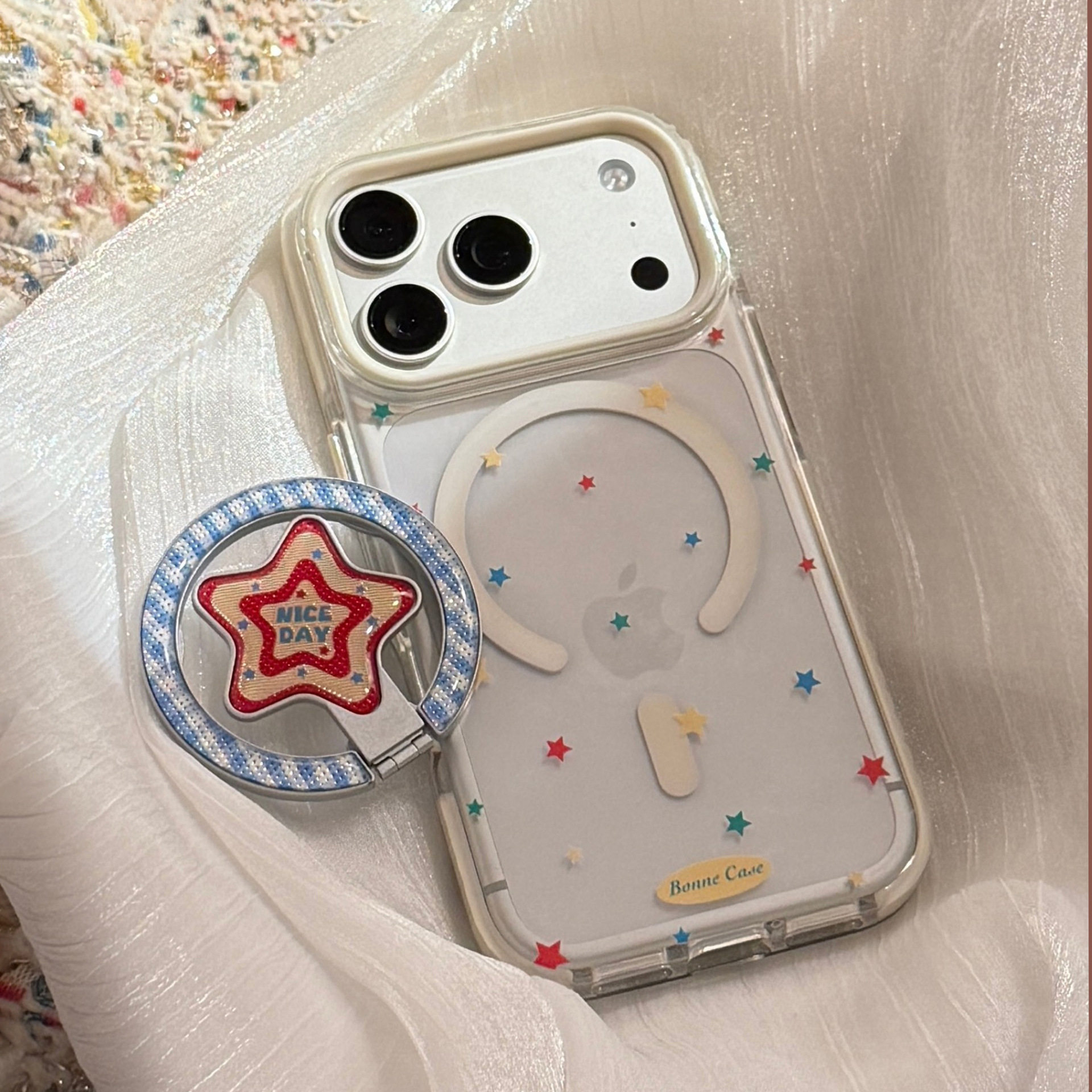 鎏金红星磁吸圈【可拆卸支架】适用苹果17女款手机壳带支架16promax新款15pro高级感2026透明iphone13女生14